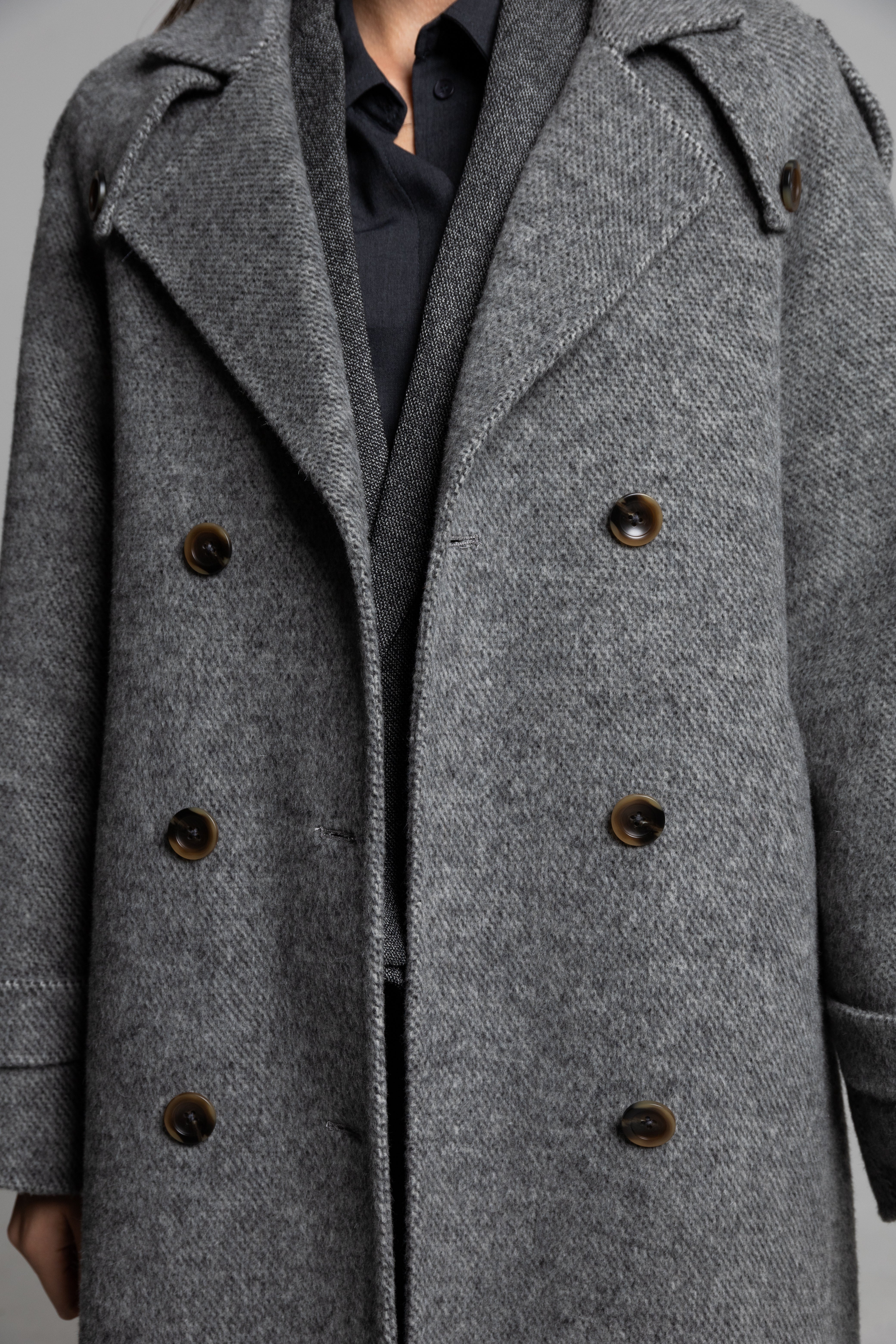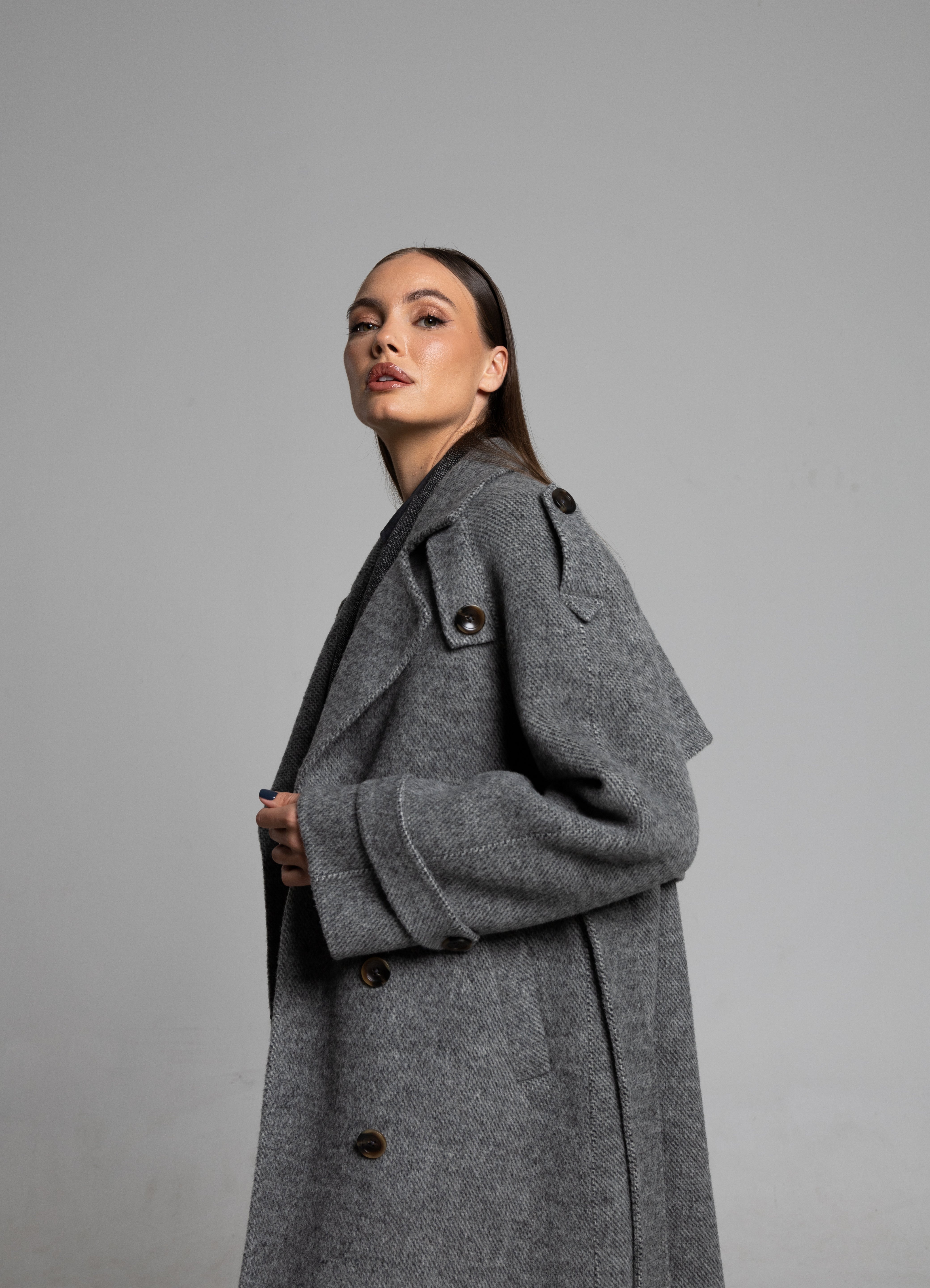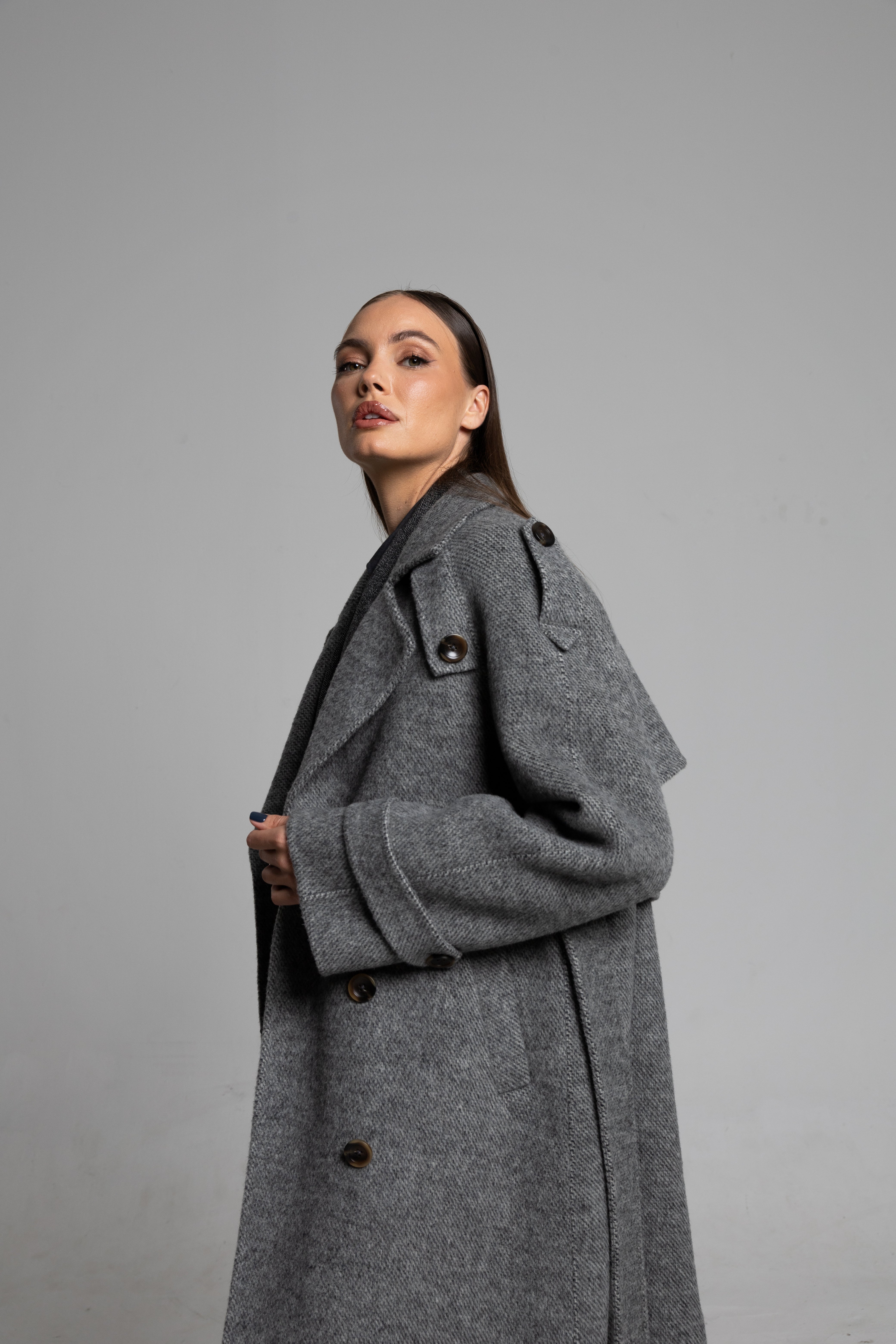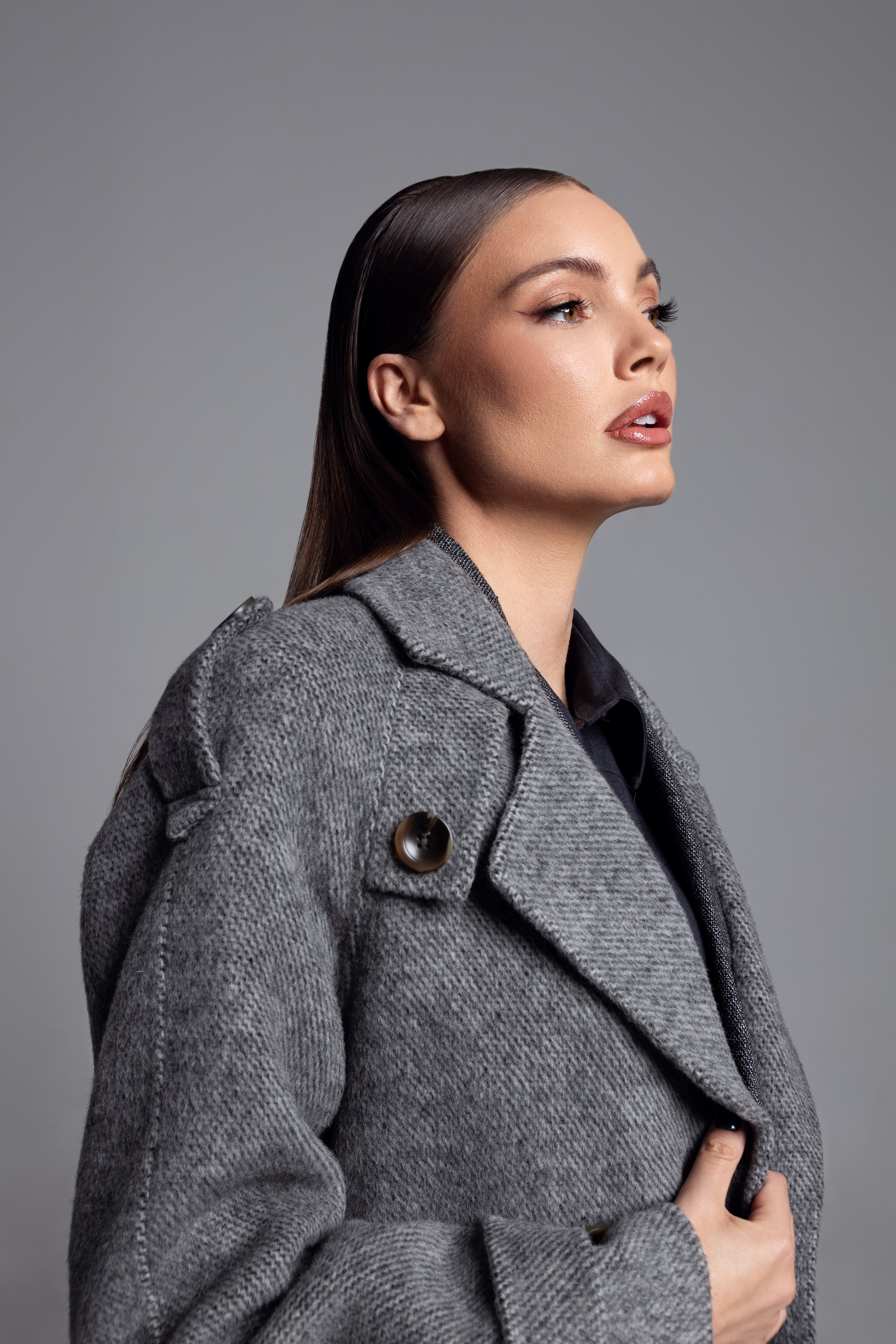ASHY JOY coat is the quintessential piece every woman should have in her wardrobe—a true classic that embodies timeless elegance. Crafted from the finest natural materials, this coat showcases exceptional quality and durability. The versatile gray shade pairs effortlessly with any other color, allowing you to wear it for any occasion. With its refined silhouette and enduring appeal, this chic model is a staple that transcends seasons and trends, making it a must-have item you’ll cherish for years to come.