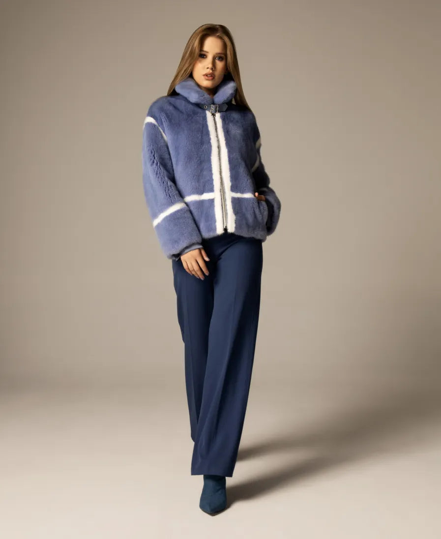 The BLUE Mink Jacket is a premium piece crafted from luxurious mink fur. This striking jacket features eye-catching white accents, making it truly stand out. With its distinctive design, the BLUE Mink Jacket ensures you won't go unnoticed. Elevate your wardrobe with this unique and stylish piece that combines elegance and boldness.