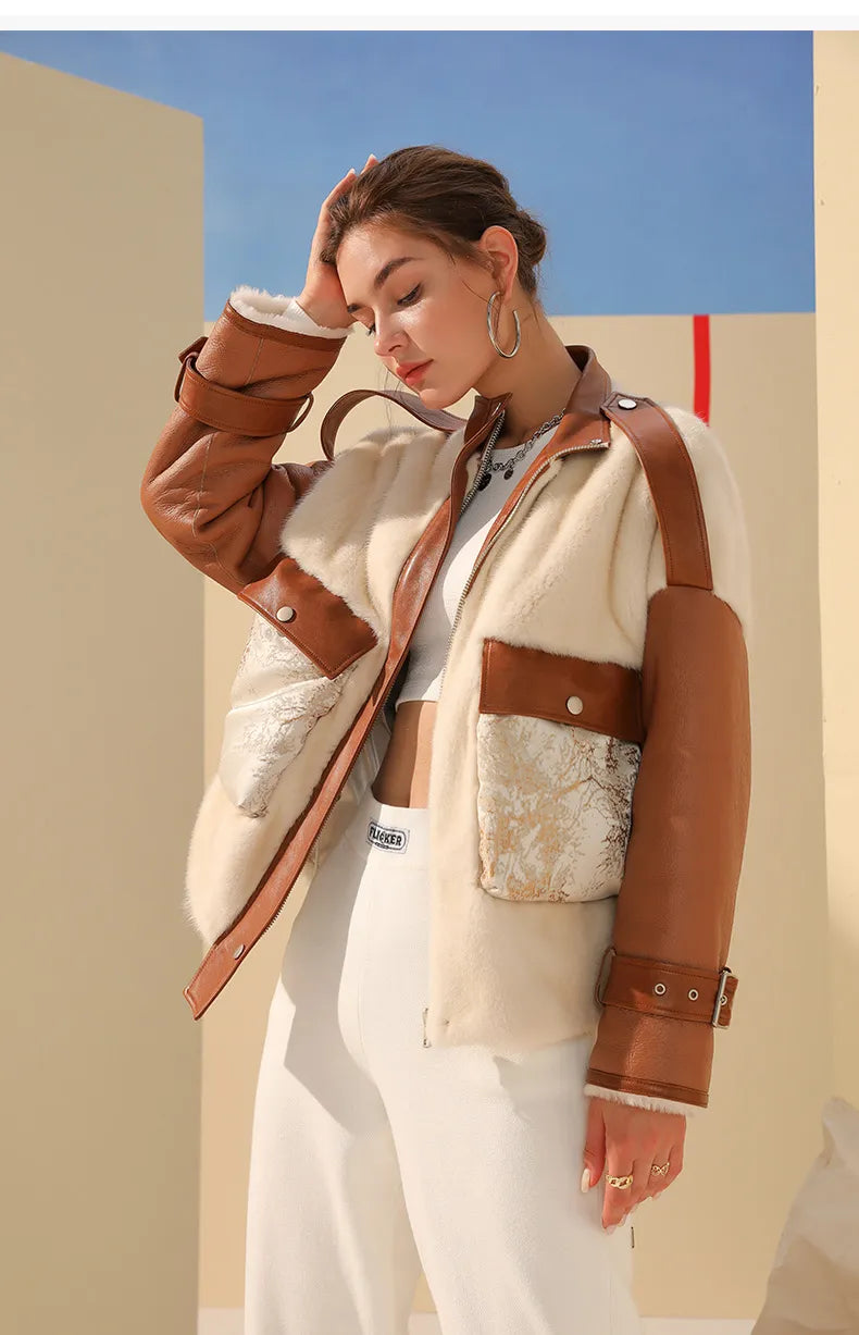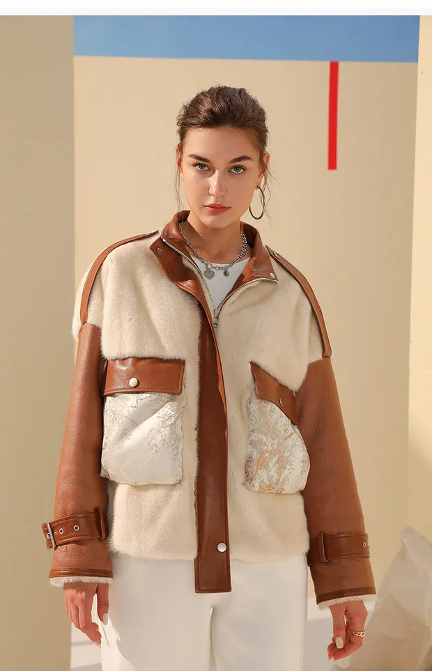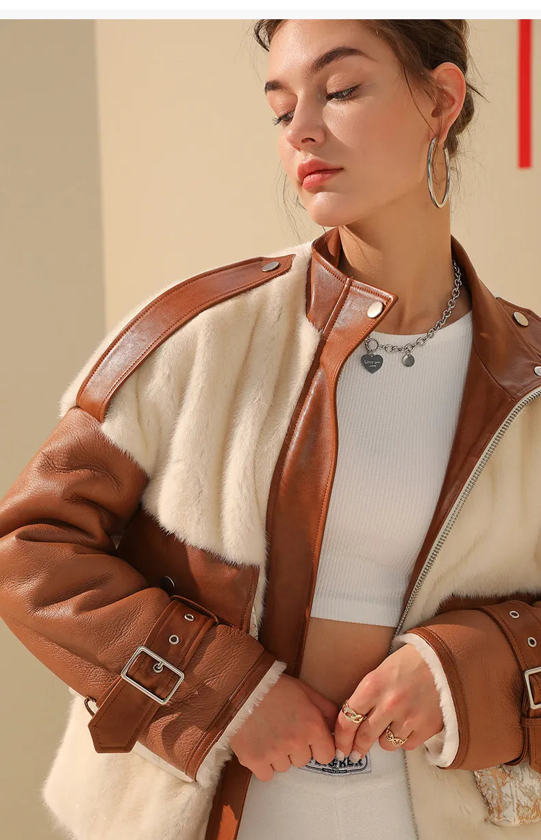 CUBA leather and mink jacket