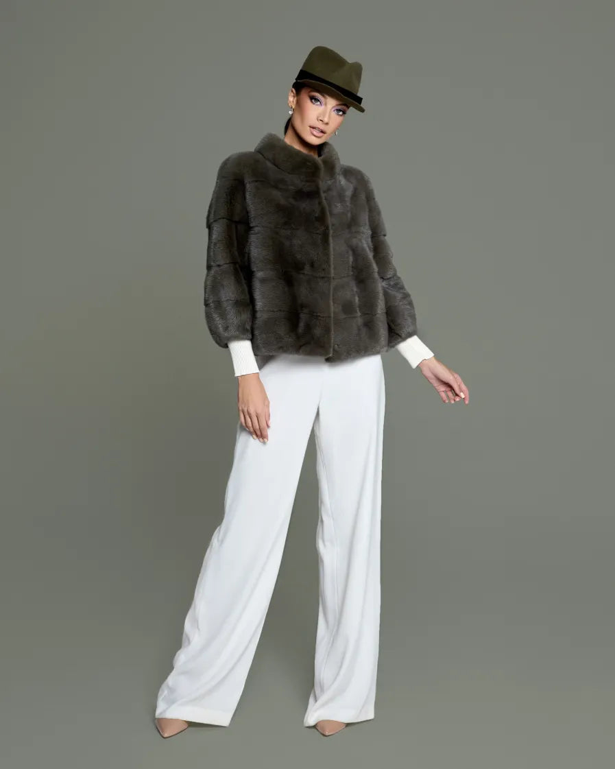 The DIANA Mink Coat is a statement piece crafted from luxurious mink fur, featuring a stunning design that captures attention. The unique combination of its premium material and eye-catching style ensures you stand out in any setting. Adorned with white accents, this coat epitomizes elegance and sophistication. Perfect for any occasion, the DIANA Mink Coat effortlessly elevates your look with its exceptional quality and distinct design