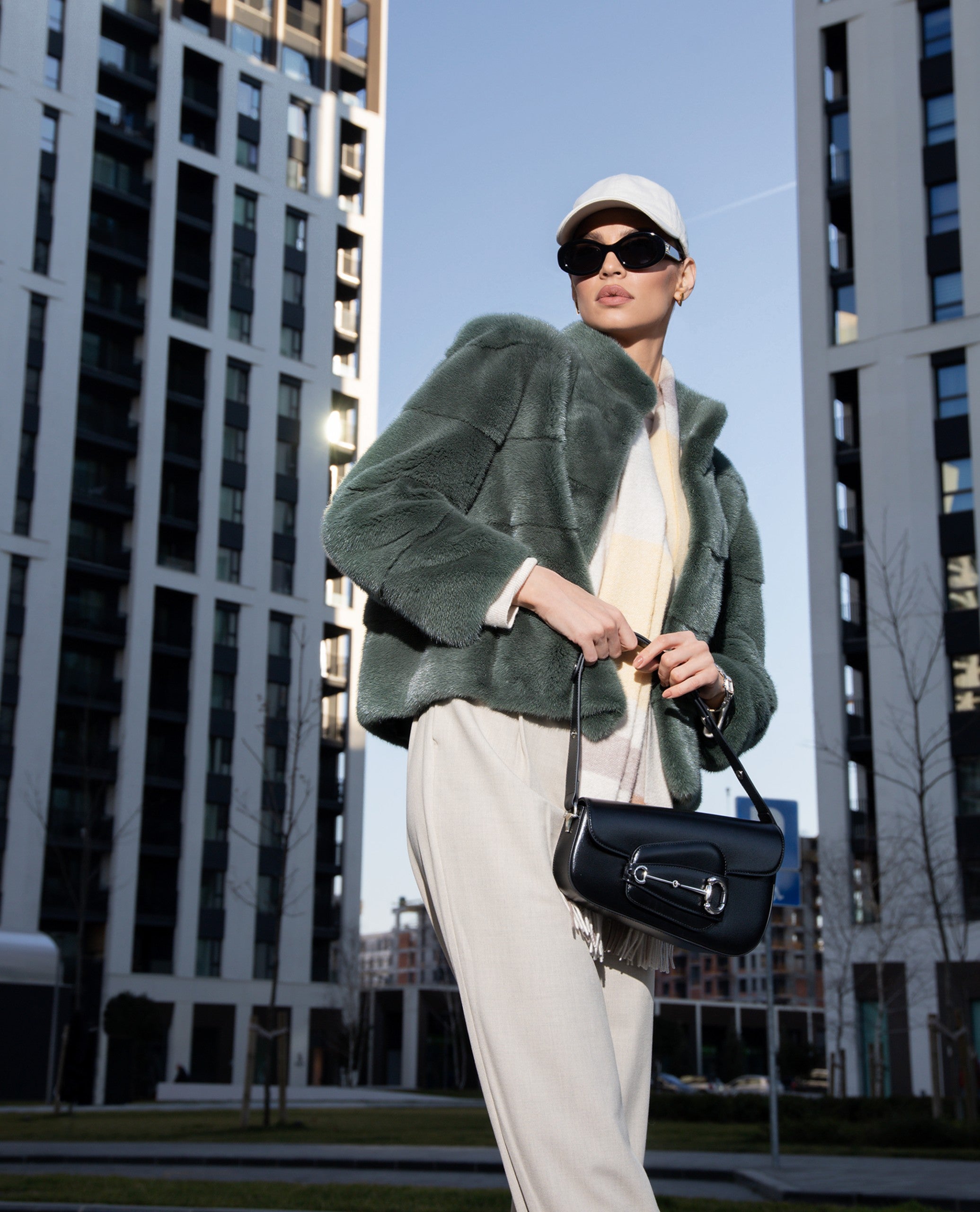 The DIANA Mink Coat is a statement piece crafted from luxurious mink fur, featuring a stunning design that captures attention. The unique combination of its premium material and eye-catching style ensures you stand out in any setting. Adorned with white accents, this coat epitomizes elegance and sophistication. Perfect for any occasion, the DIANA Mink Coat effortlessly elevates your look with its exceptional quality and distinct design