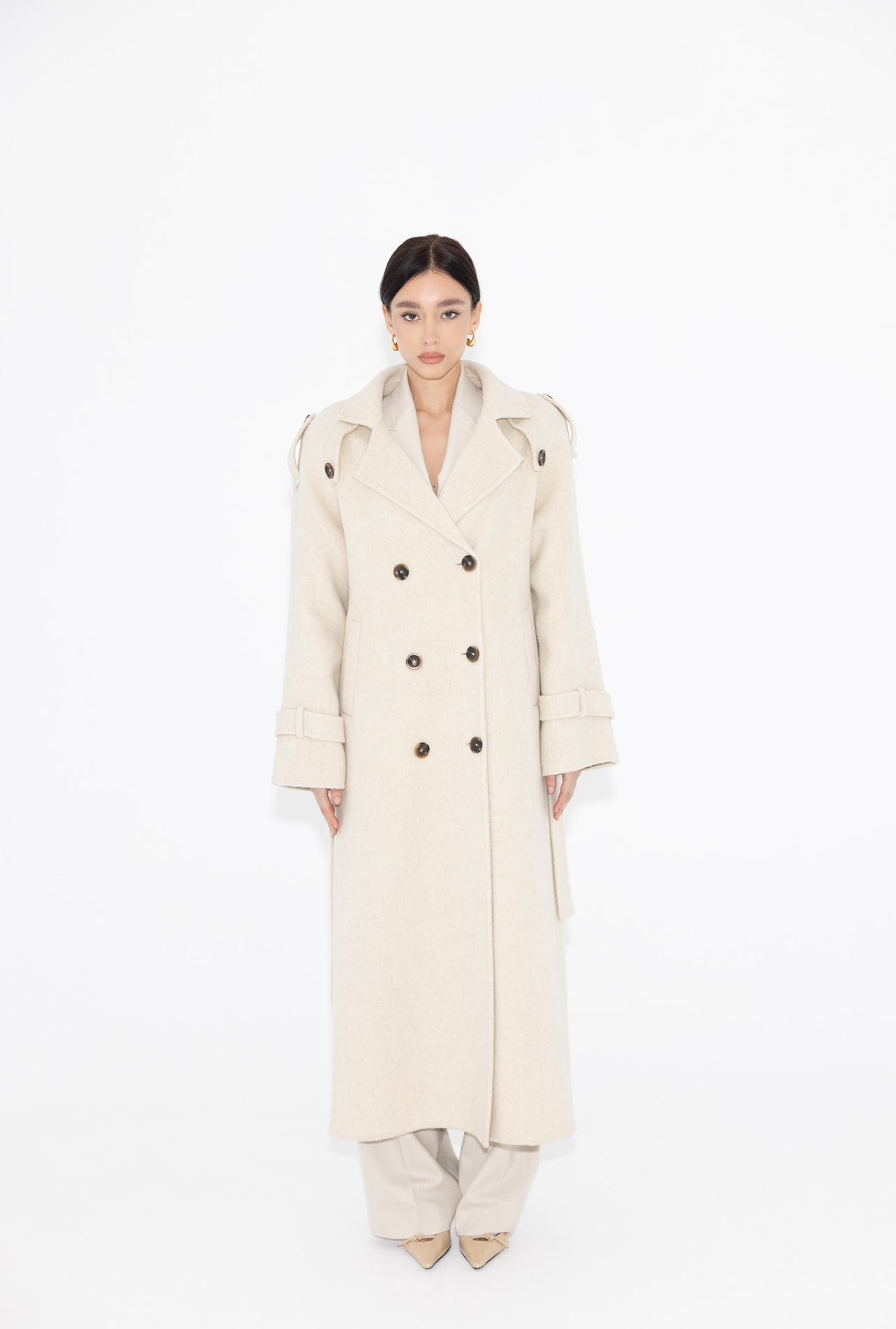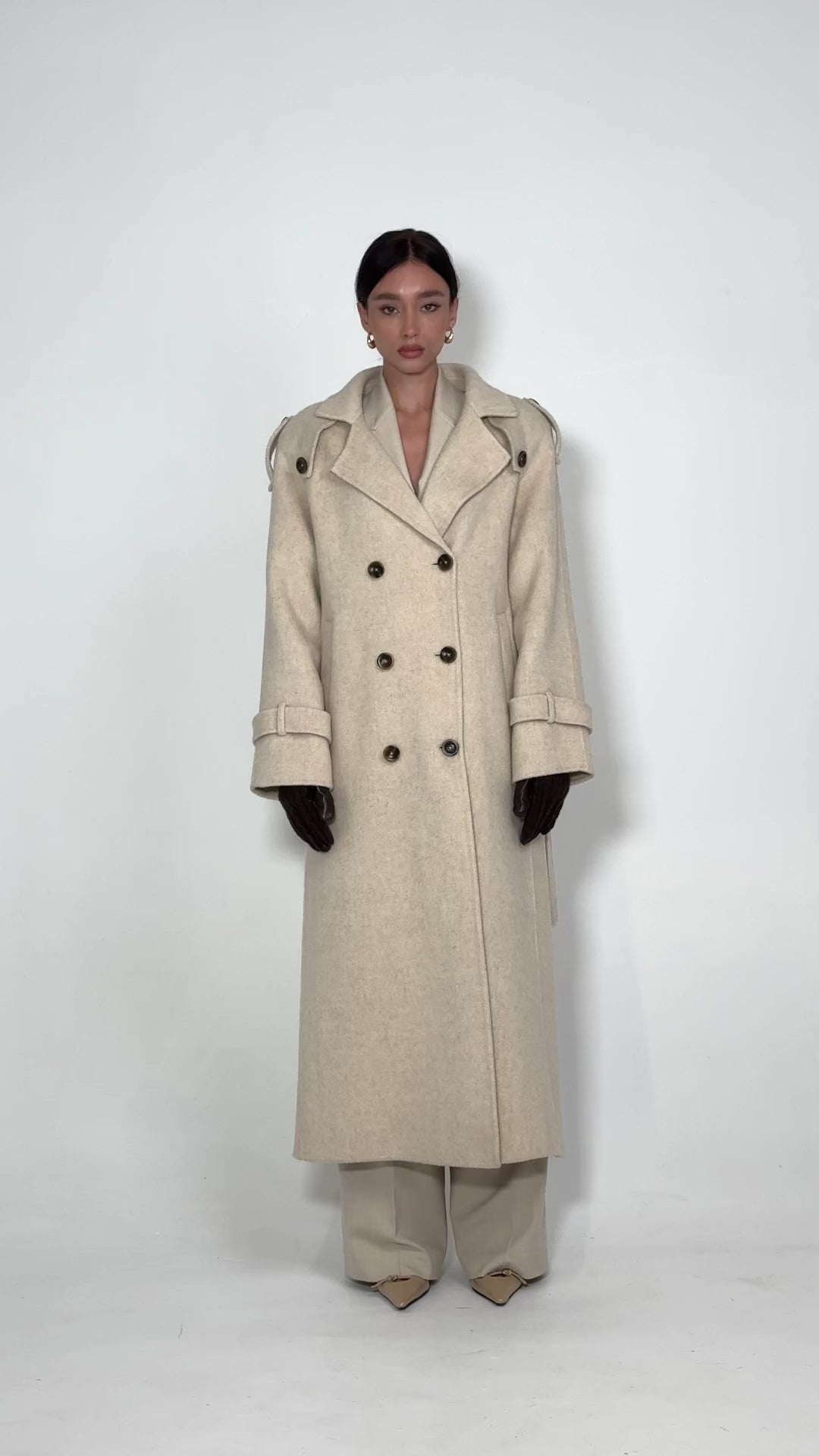 ELSIE JOY Coat is a modern masterpiece featuring standout details such as belts on the shoulders and around the sleeves, complemented by sleek buttons. The waist belt effortlessly alters the silhouette, making this coat a preffered choice for many. Perfect for a street-style look, it exudes contemporary flair, yet can be styled for more elegant ensembles depending on the color and accessories.