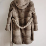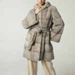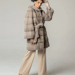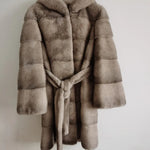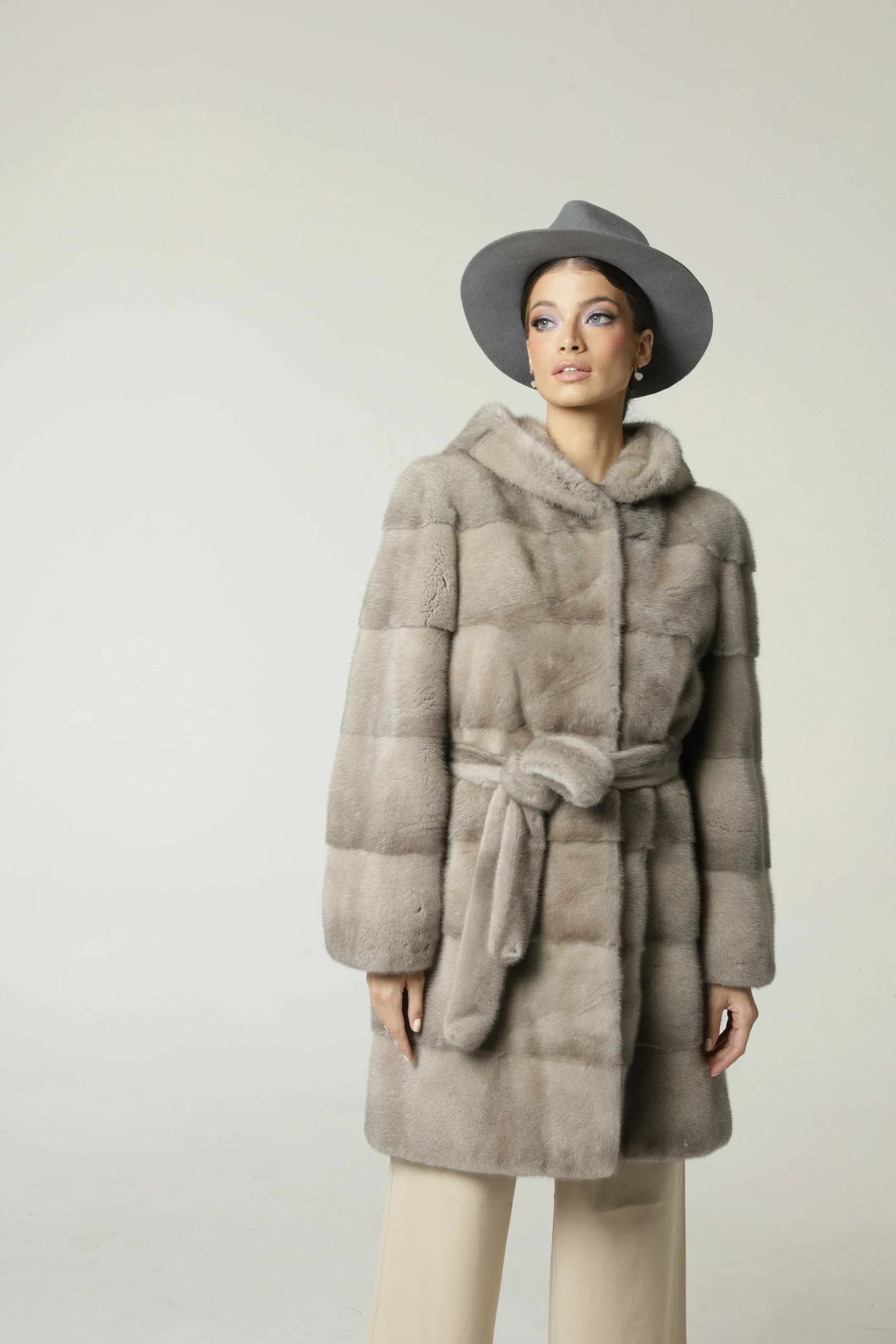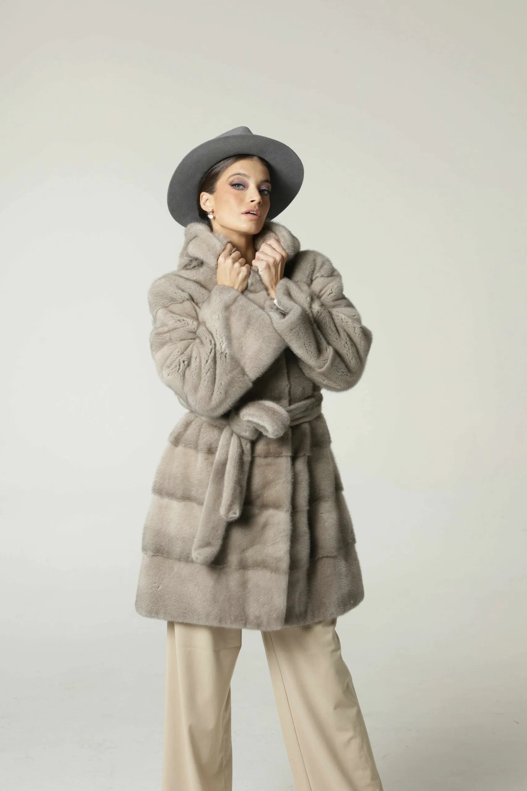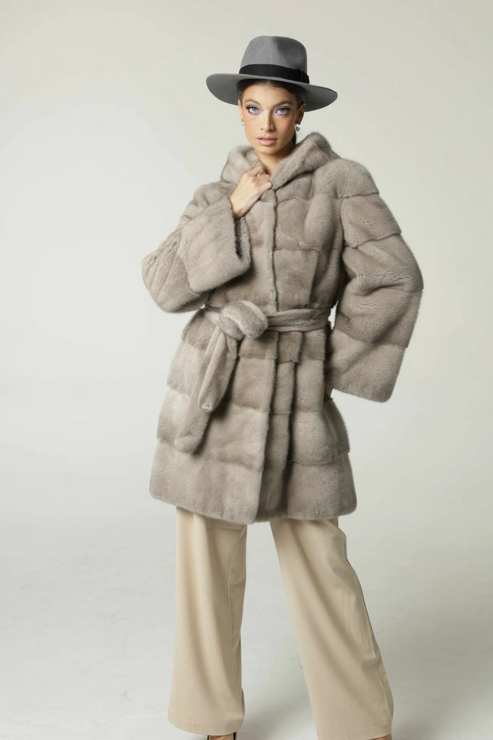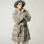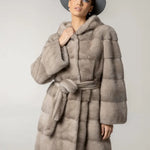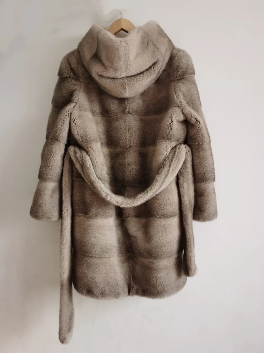 The GRETA Mink Coat is a premium piece that embodies elegance and sophistication. Crafted from luxurious mink fur, this coat features a wide hood and bell sleeves, adding a touch of modern flair to its classic design. The GRETA Mink Coat comes with a belt that cinches at the waist, accentuating your silhouette while providing warmth and comfort. Allows you to personalize your style and perfectly match your wardrobe. The coat's silk lining enhances its luxurious feel, making it an ideal choice for any occasion. Whether you're dressing up for a special event or adding a touch of refinement to your everyday look, the GRETA Mink Coat is sure to make a statement.