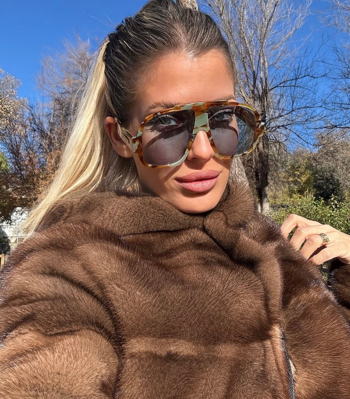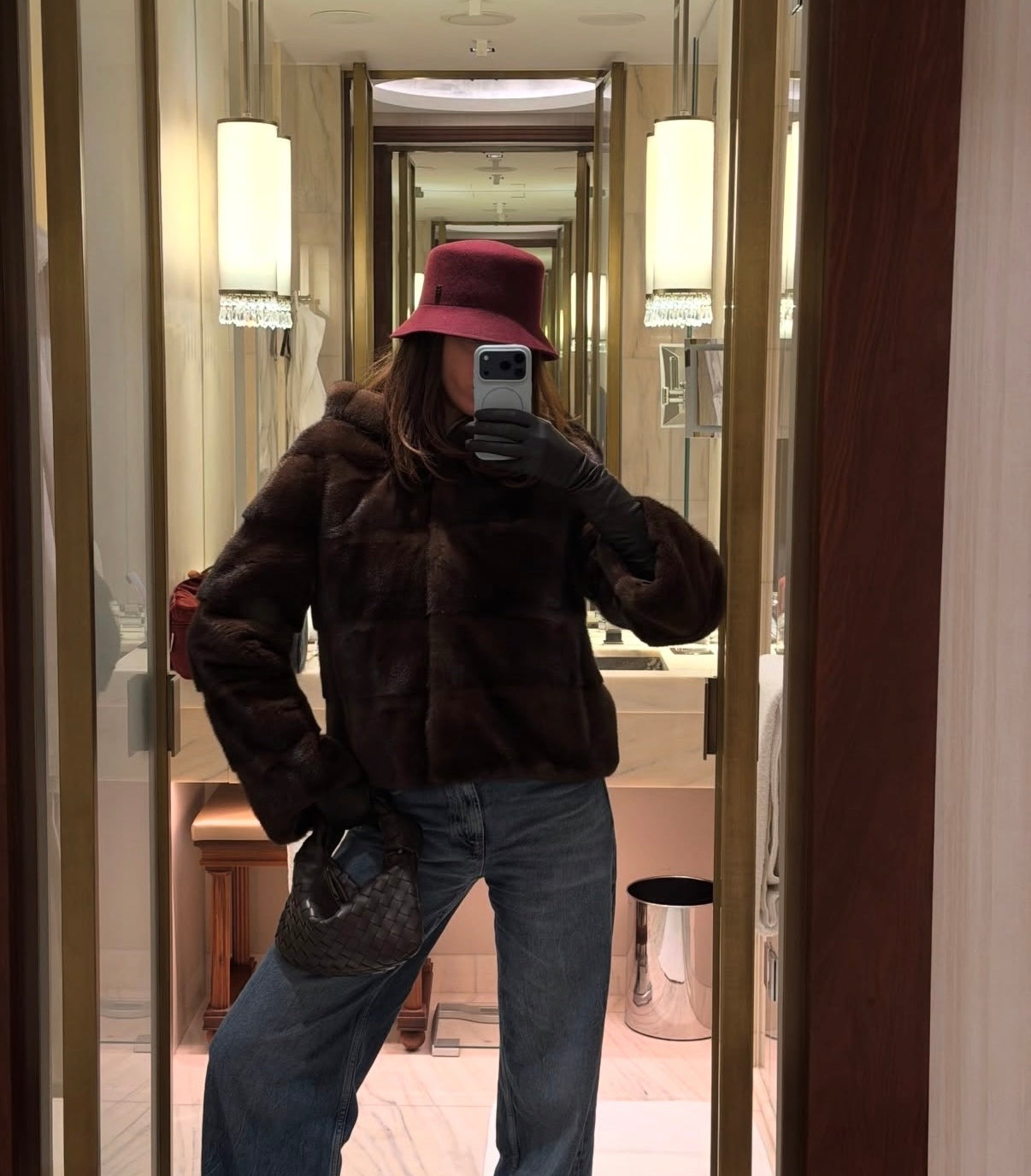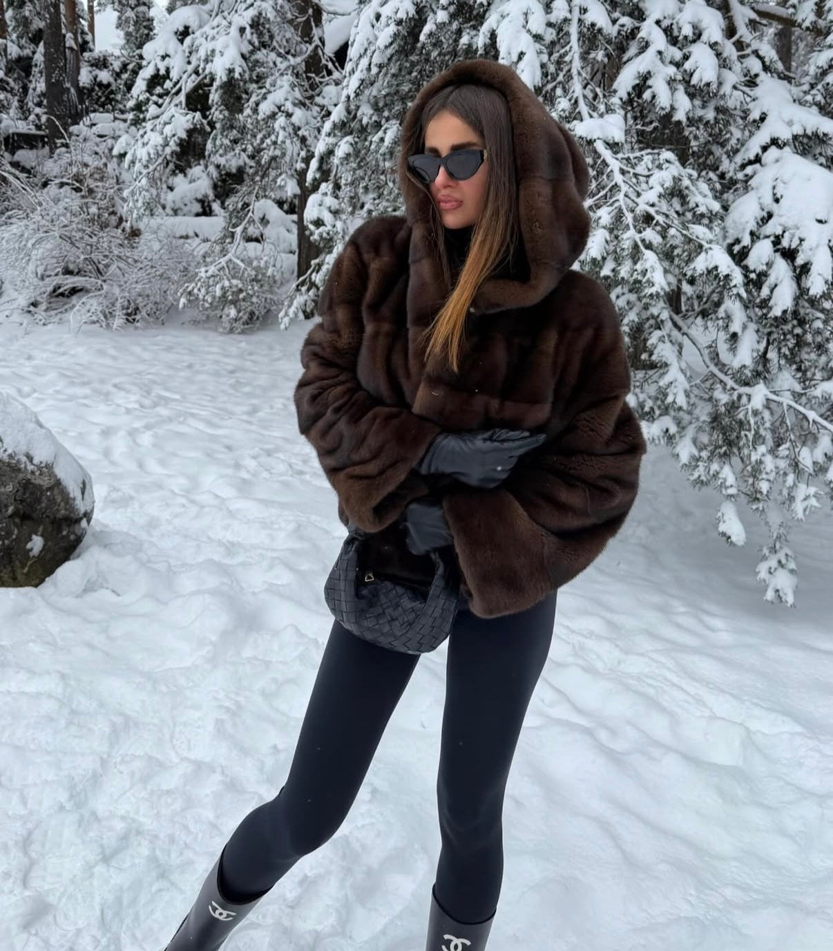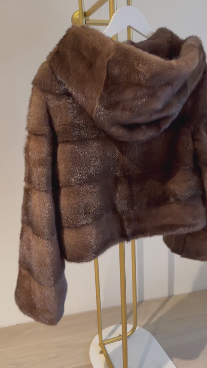 GRETA Brown mink hoodie coat