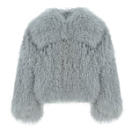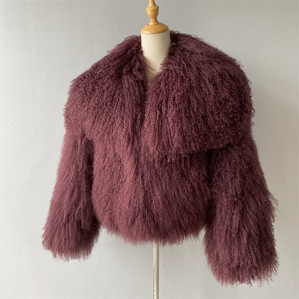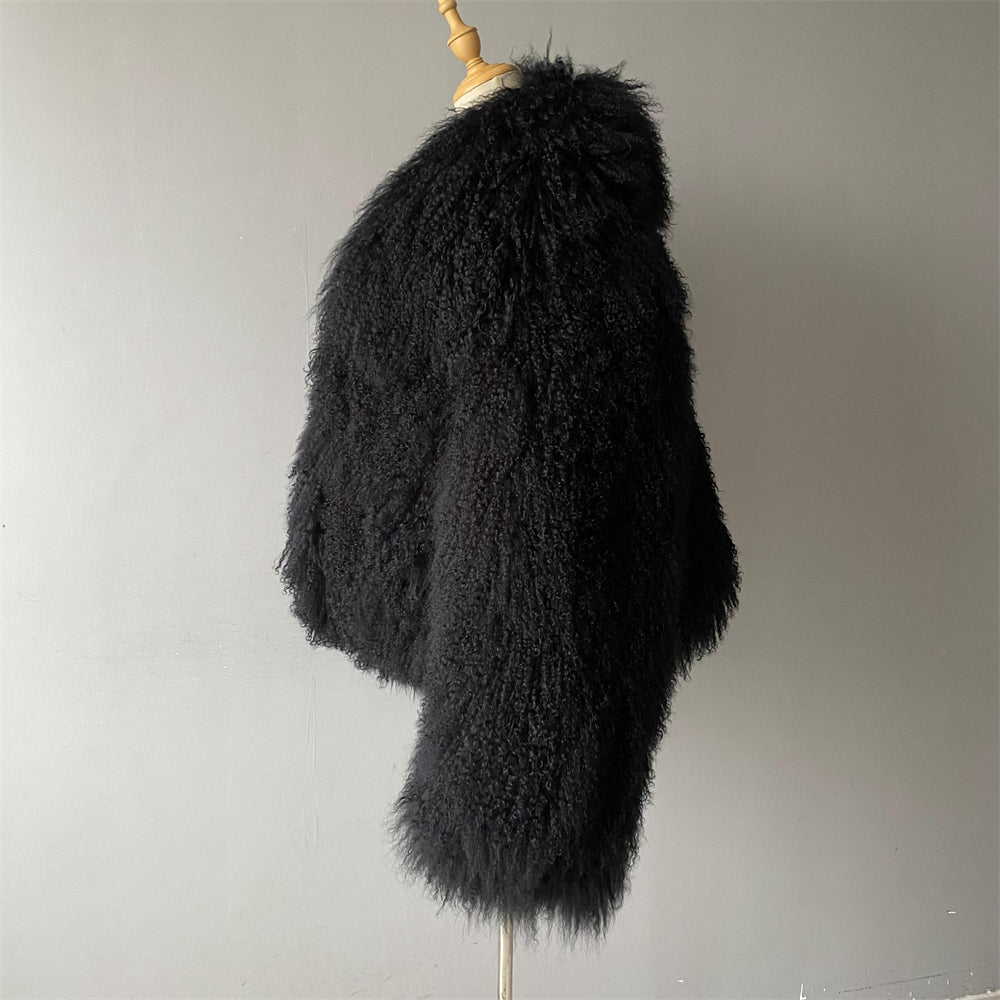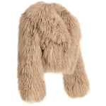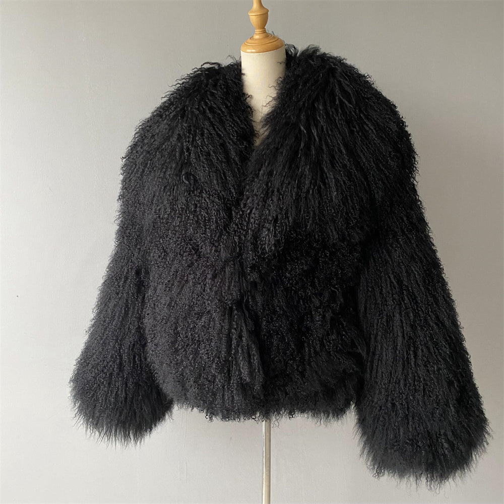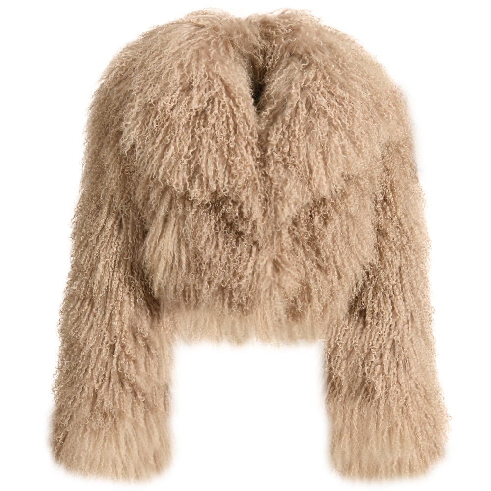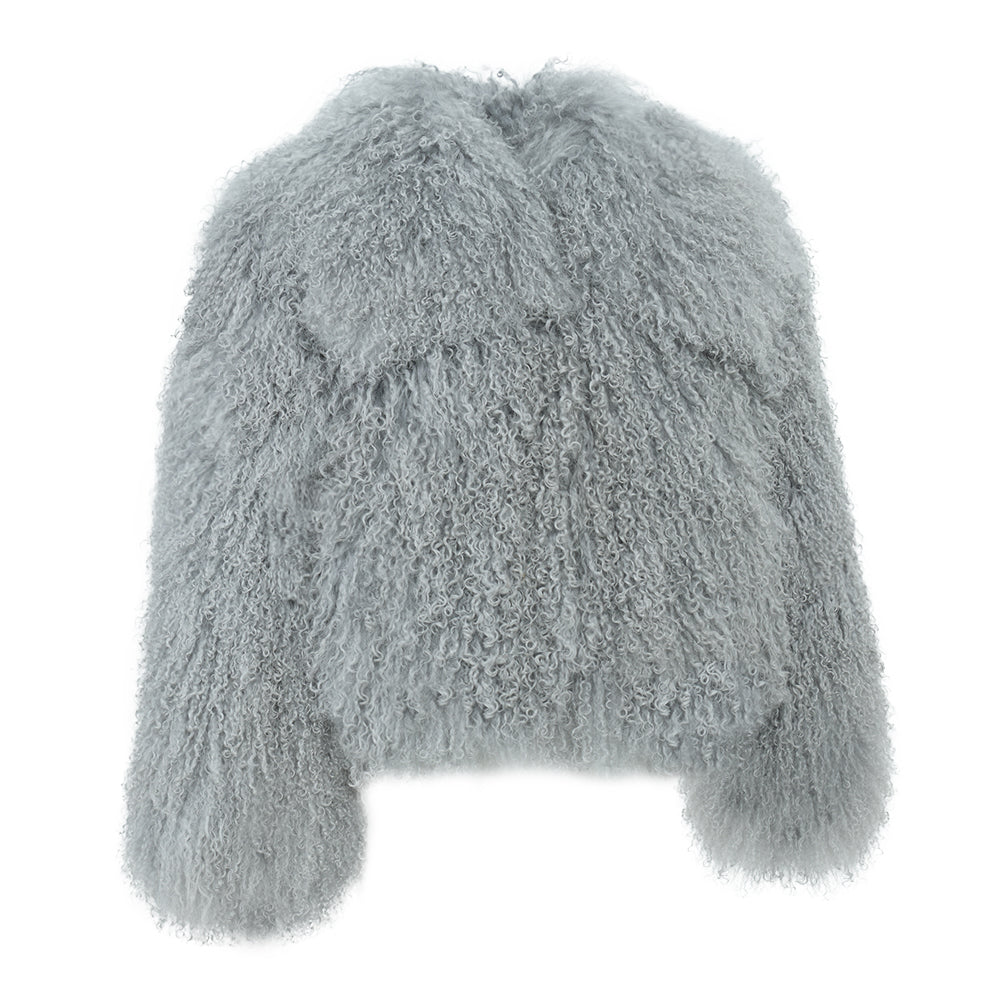 The JOY Mongolian Shearling Jacket is an embodiment of opulence and warmth. Crafted from the finest Mongolian lamb fur, this coat showcases the lush, long, and curly texture that is unique to Mongolian sheep. Known for its exceptional softness, this natural fur not only provides luxurious comfort but also creates a striking visual effect that exudes sophistication. Mongolian shearling is renowned in the fashion world for its versatility, seamlessly transitioning from casual to high-end looks, while offering durability that ensures long-lasting beauty.