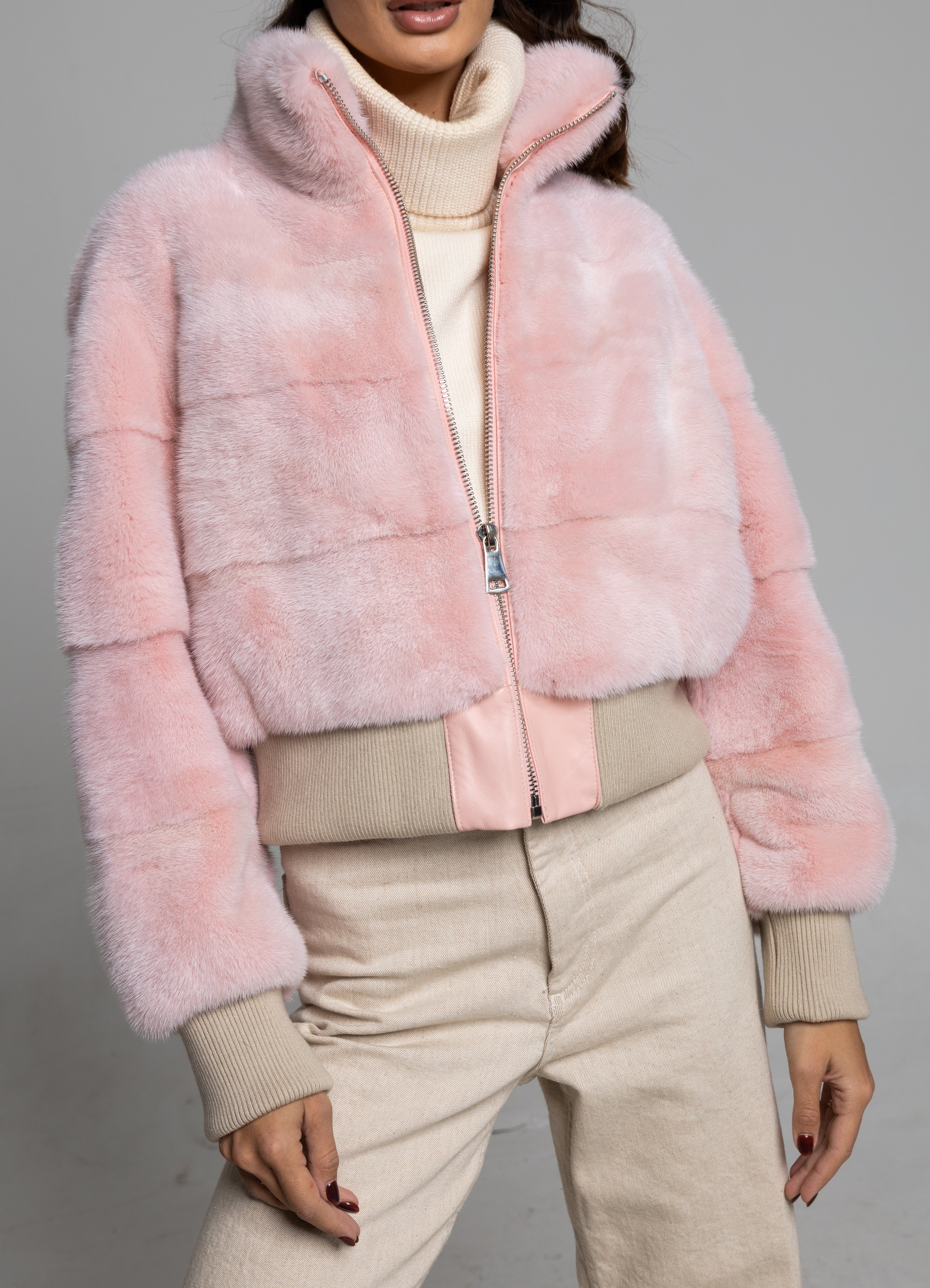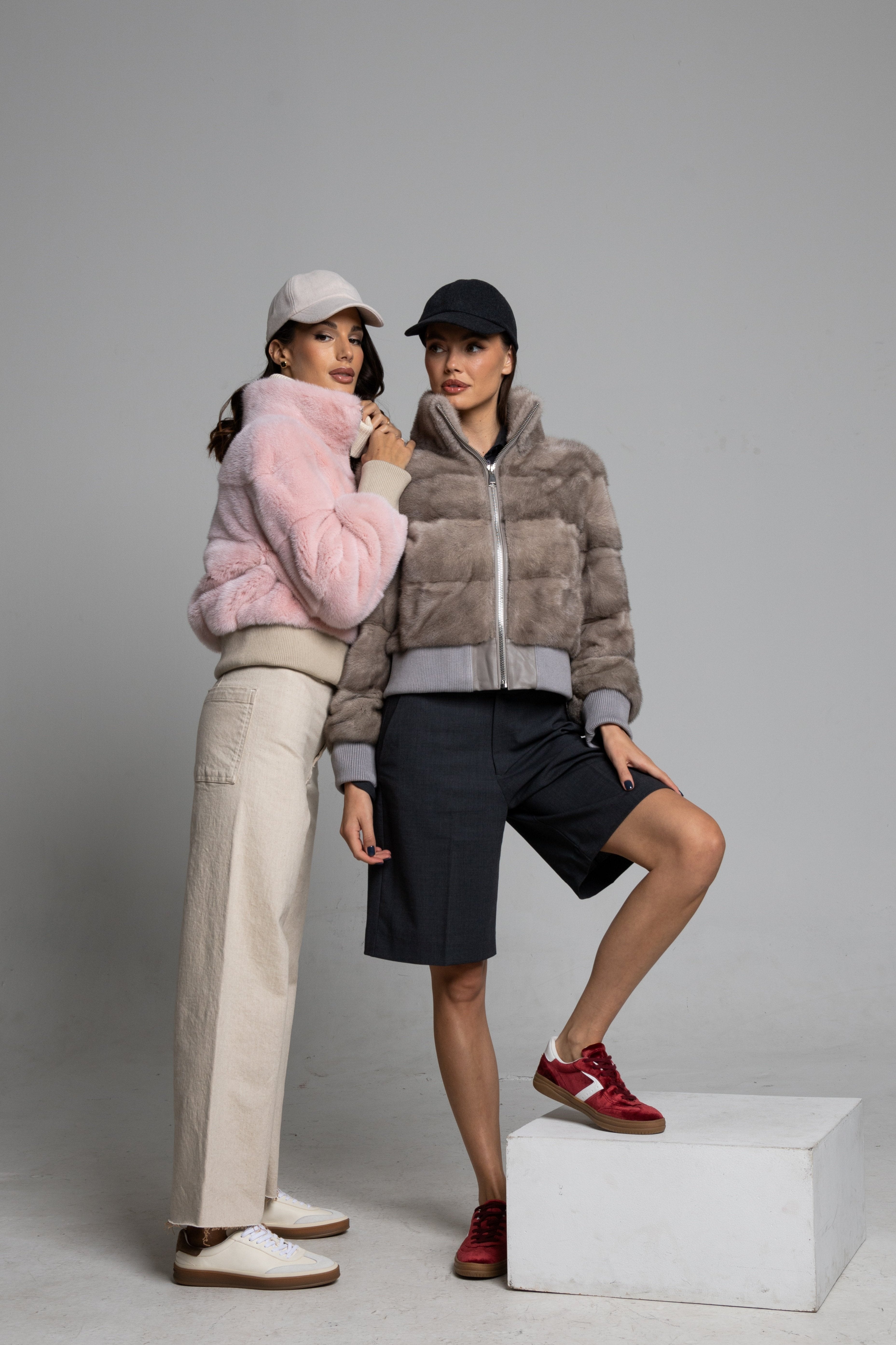 The JOY Mink Bomber seamlessly blends the contemporary style of a bomber jacket with the luxurious appeal of mink fur, creating an unbeatable combination for those who wish to stay on-trend while indulging in opulence. Available in a variety of colors, this jacket is perfect for daily wear, adding a touch of sophistication to your everyday look. By night, it transforms into a statement piece, elevating your evening ensemble to new heights of elegance.