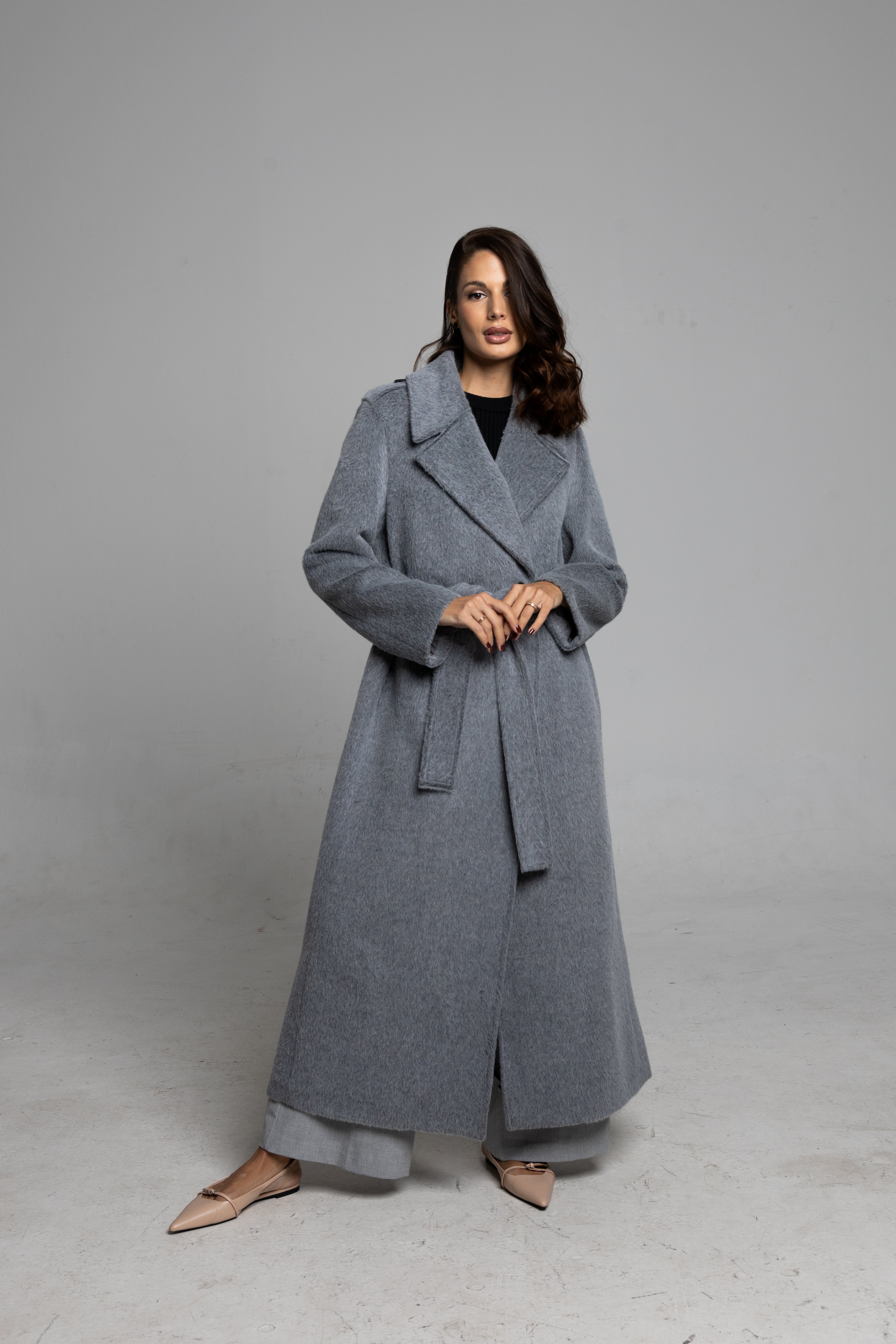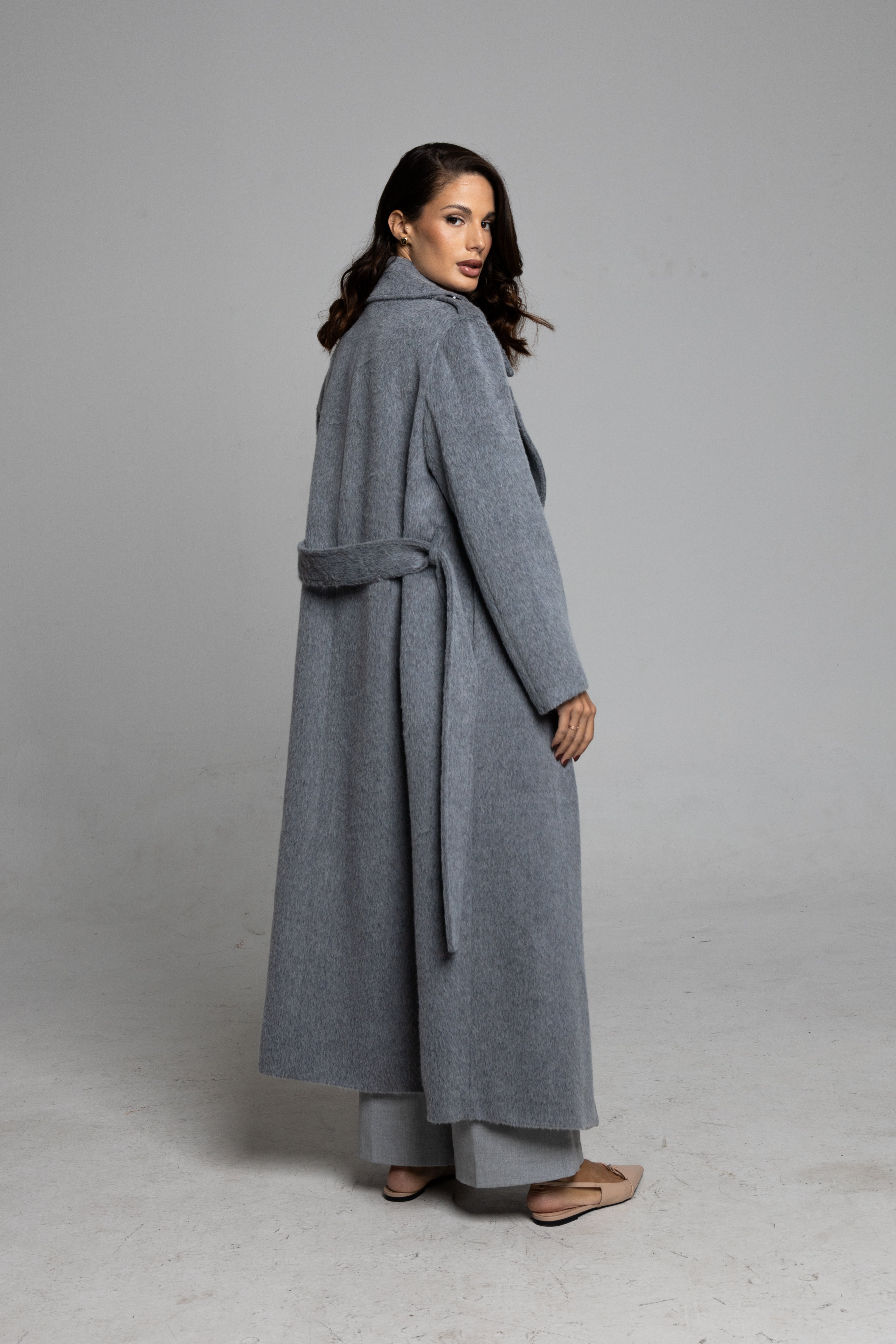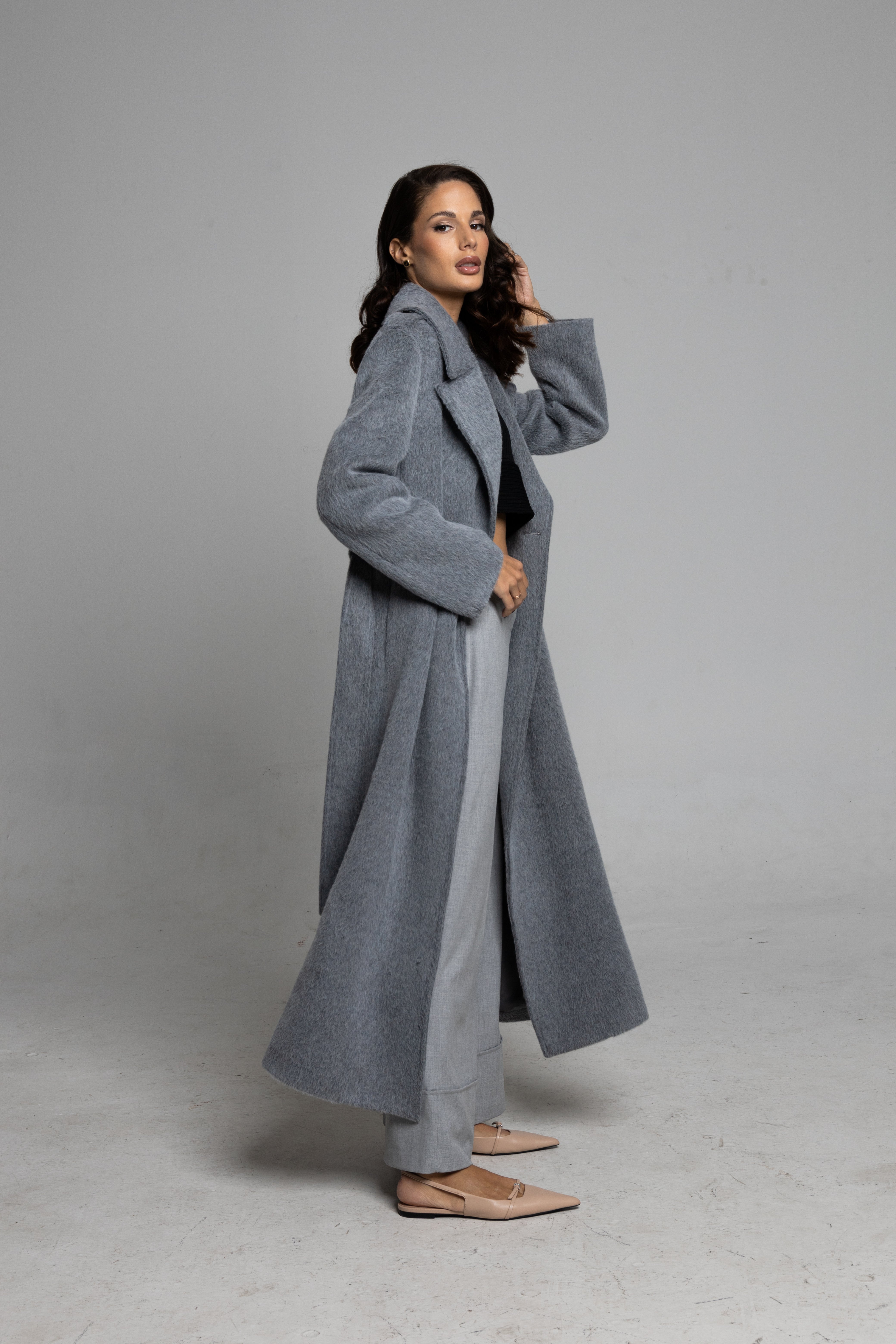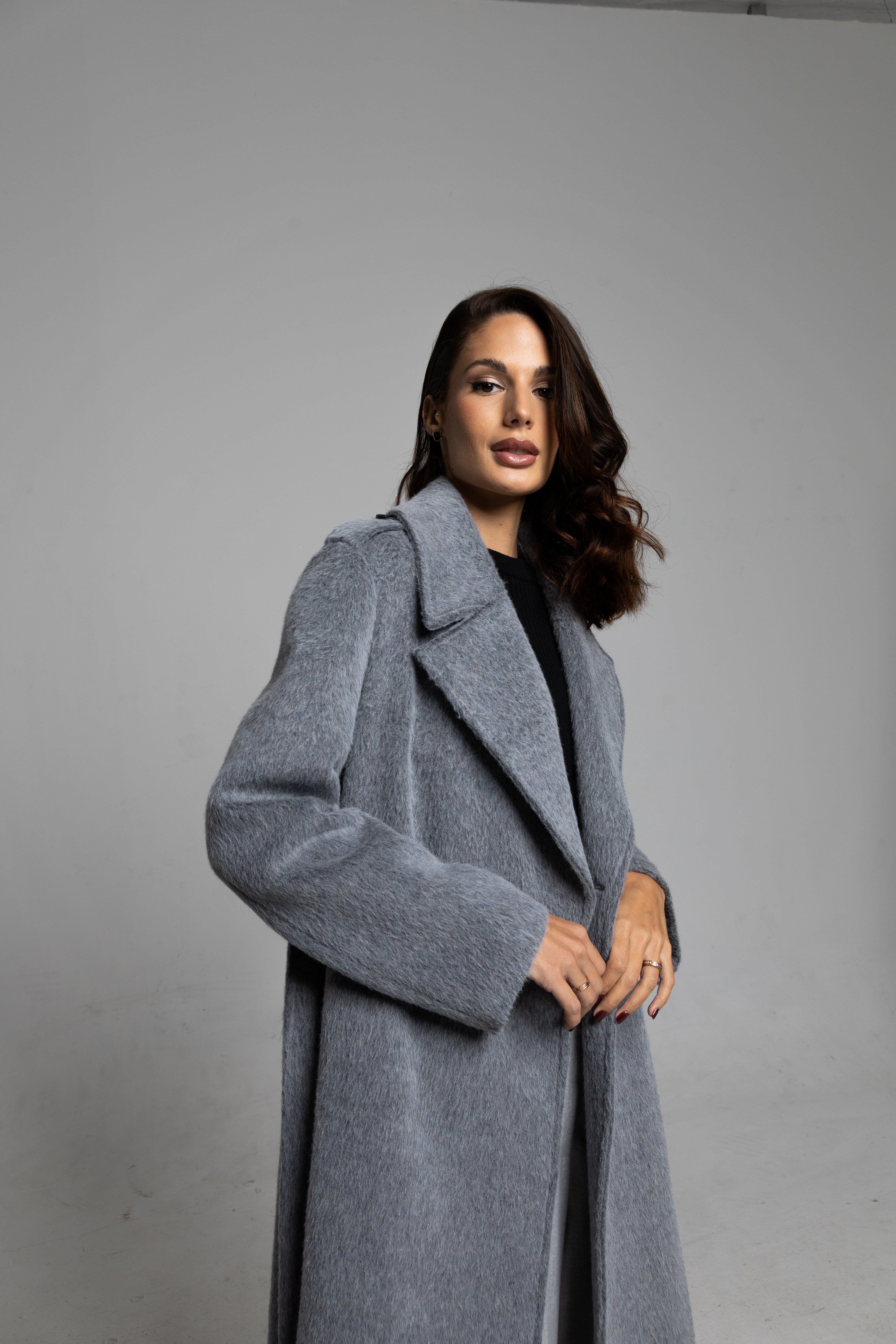 The JOY royal alpaca wool coat exudes elegance and exclusivity, showcasing the refined qualities of this extraordinary material. Renowned for its lightweight warmth, softness, and durability, alpaca is a luxurious choice that provides exceptional comfort and sophistication. The coat’s perfectly tailored shoulders enhance its silhouette, offering a flattering and polished look. Its versatile gray hue pairs effortlessly with any color, making it easy to style for any occasion. Elevate your wardrobe with this timeless piece, embodying a perfect blend of luxury and practicality.