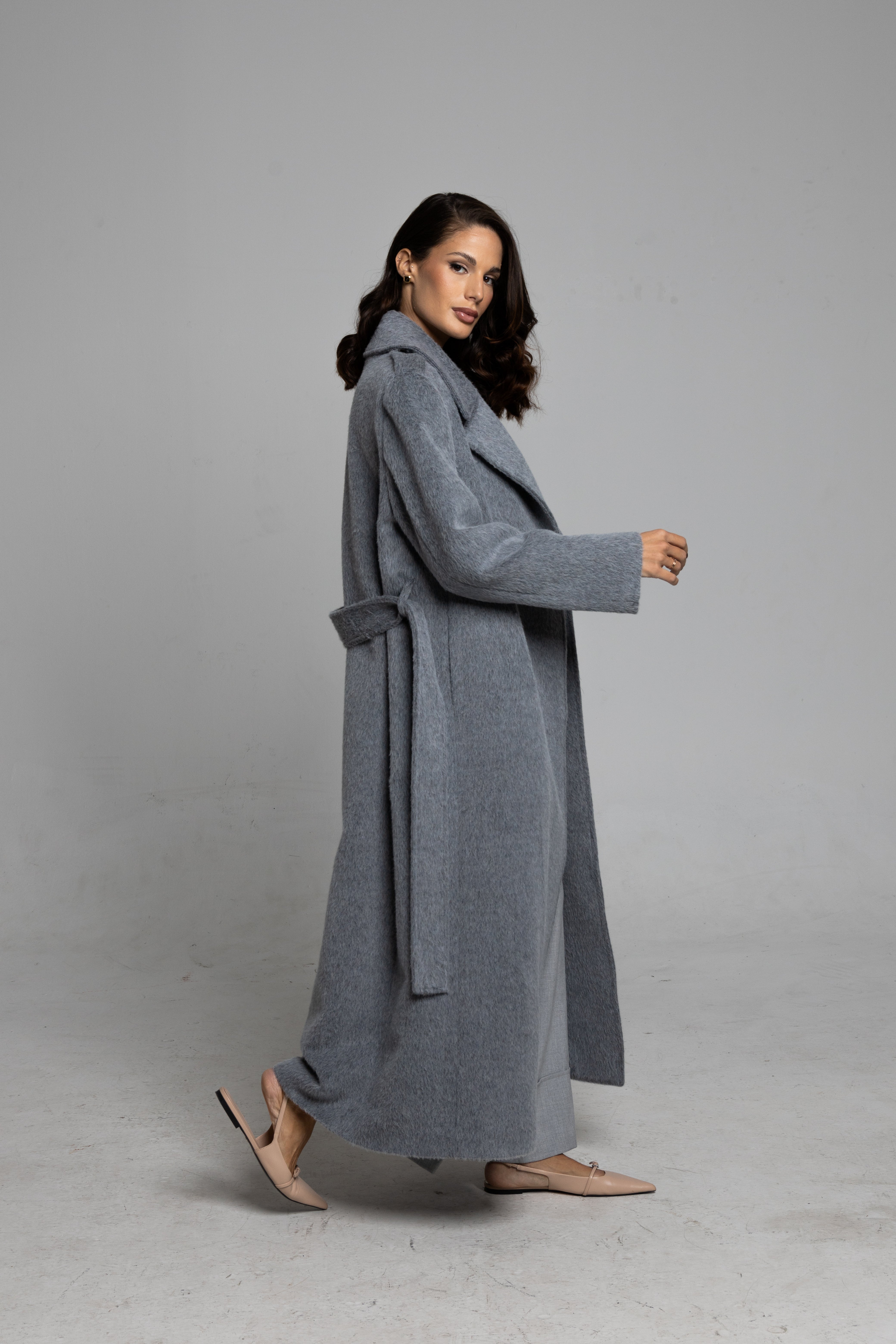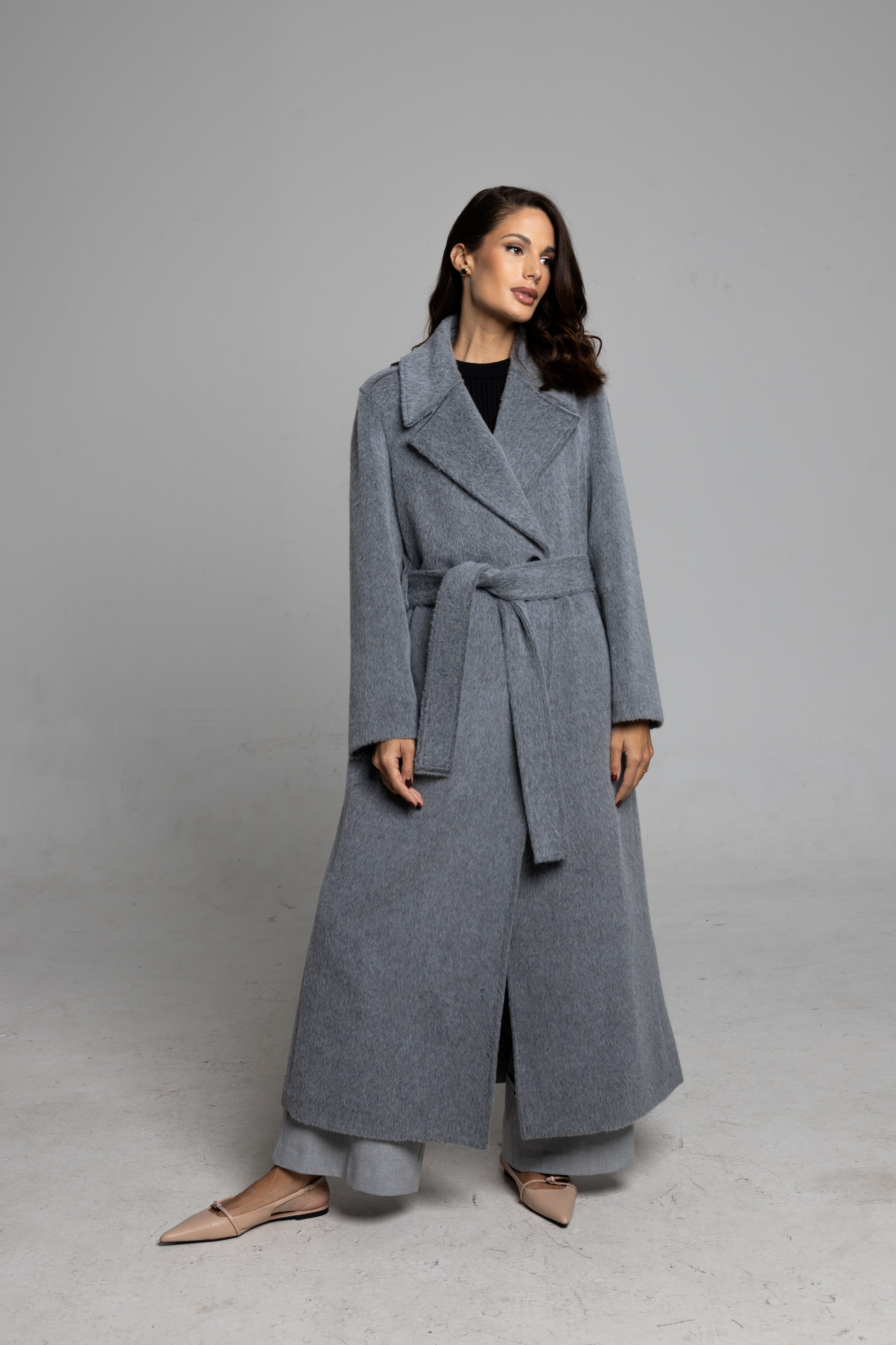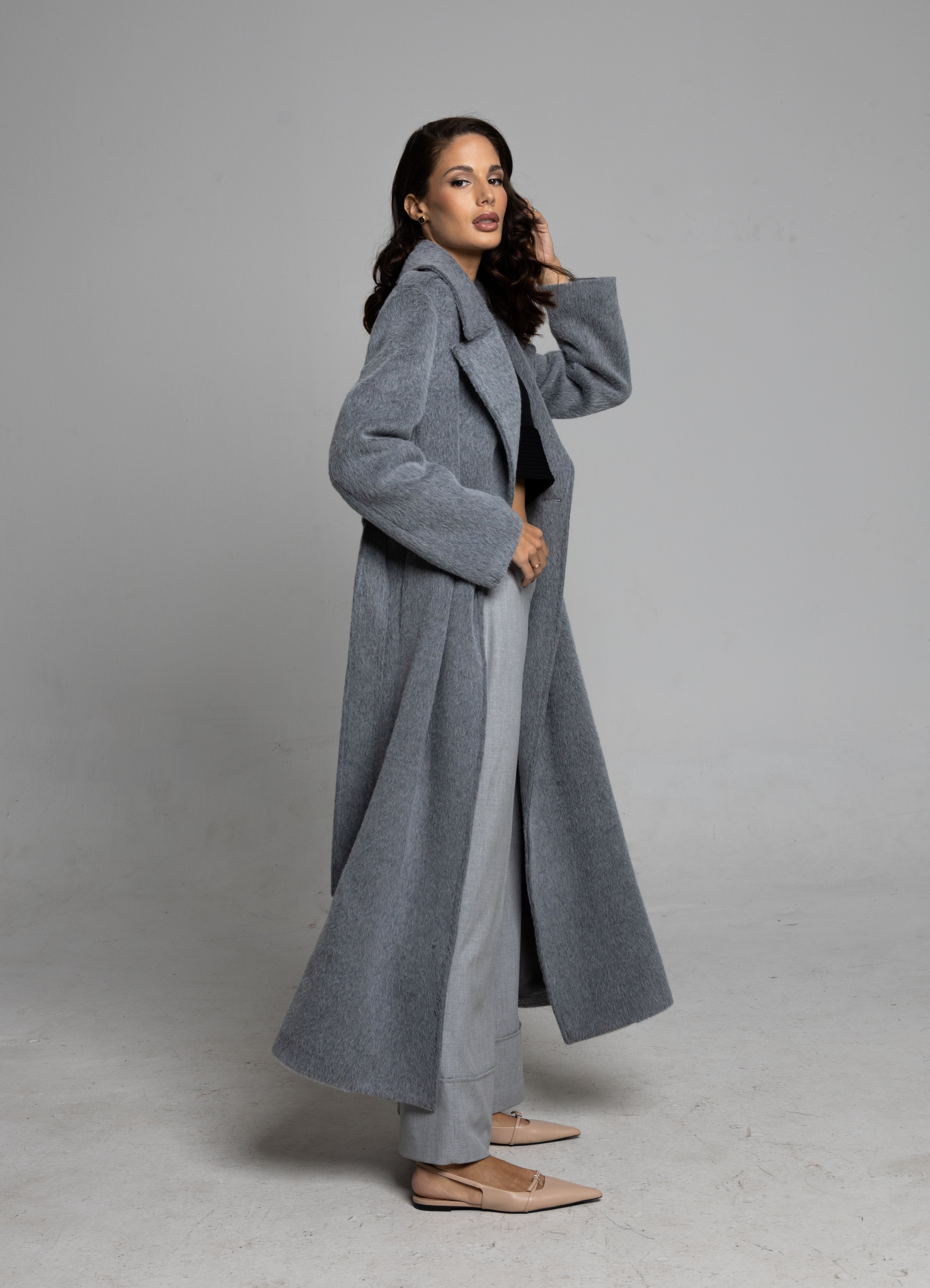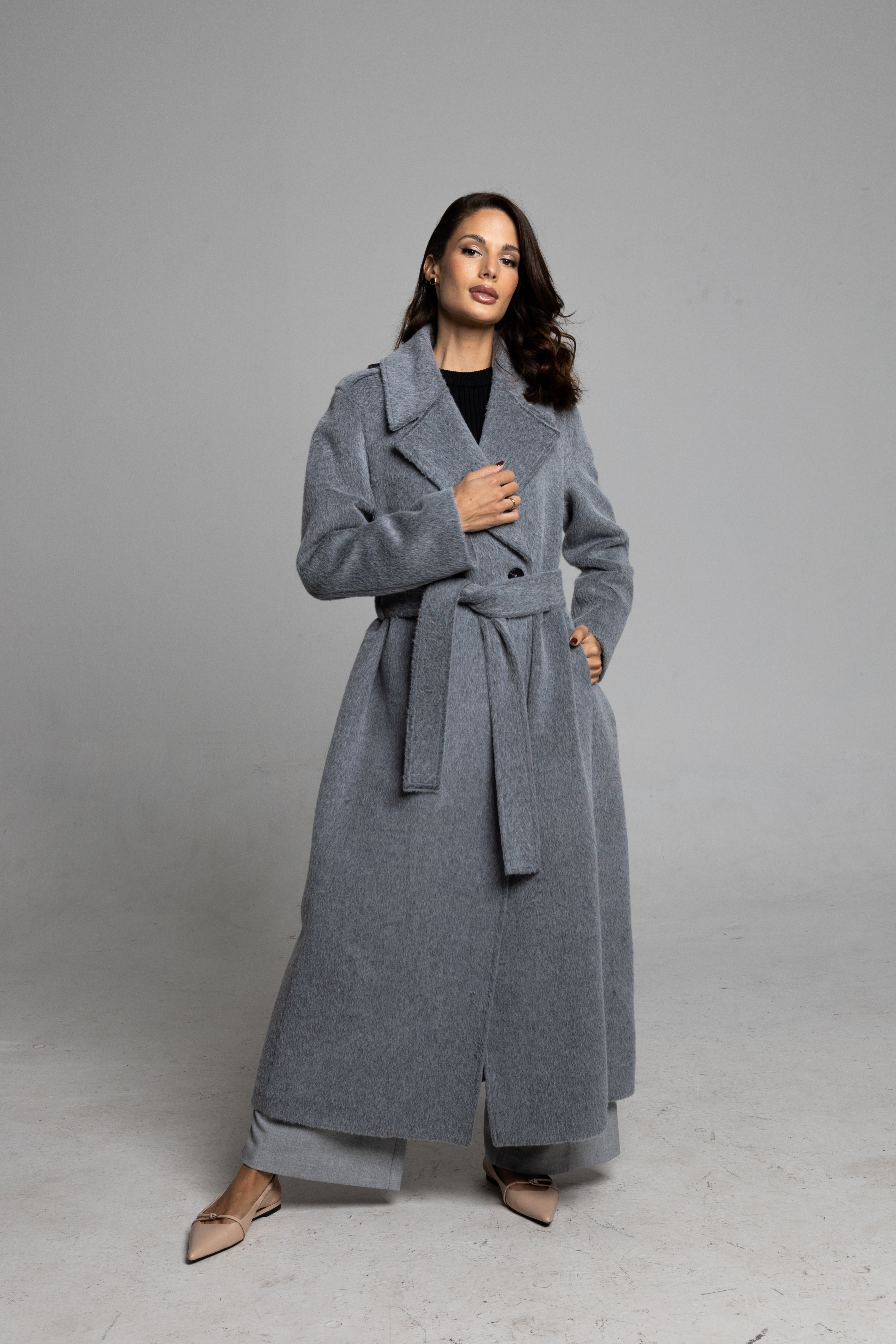 The JOY royal alpaca wool coat exudes elegance and exclusivity, showcasing the refined qualities of this extraordinary material. Renowned for its lightweight warmth, softness, and durability, alpaca is a luxurious choice that provides exceptional comfort and sophistication. The coat’s perfectly tailored shoulders enhance its silhouette, offering a flattering and polished look. Its versatile gray hue pairs effortlessly with any color, making it easy to style for any occasion. Elevate your wardrobe with this timeless piece, embodying a perfect blend of luxury and practicality.
