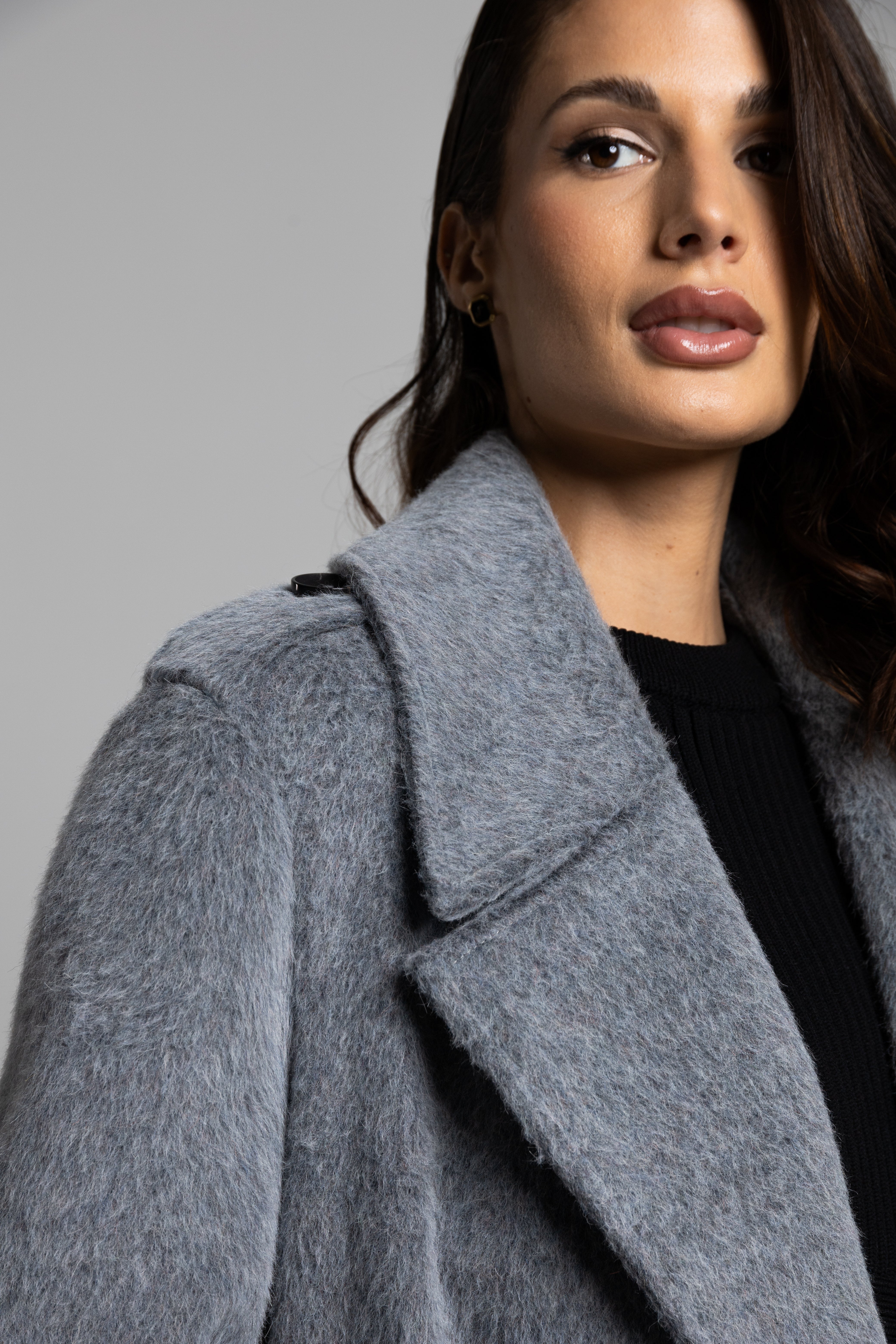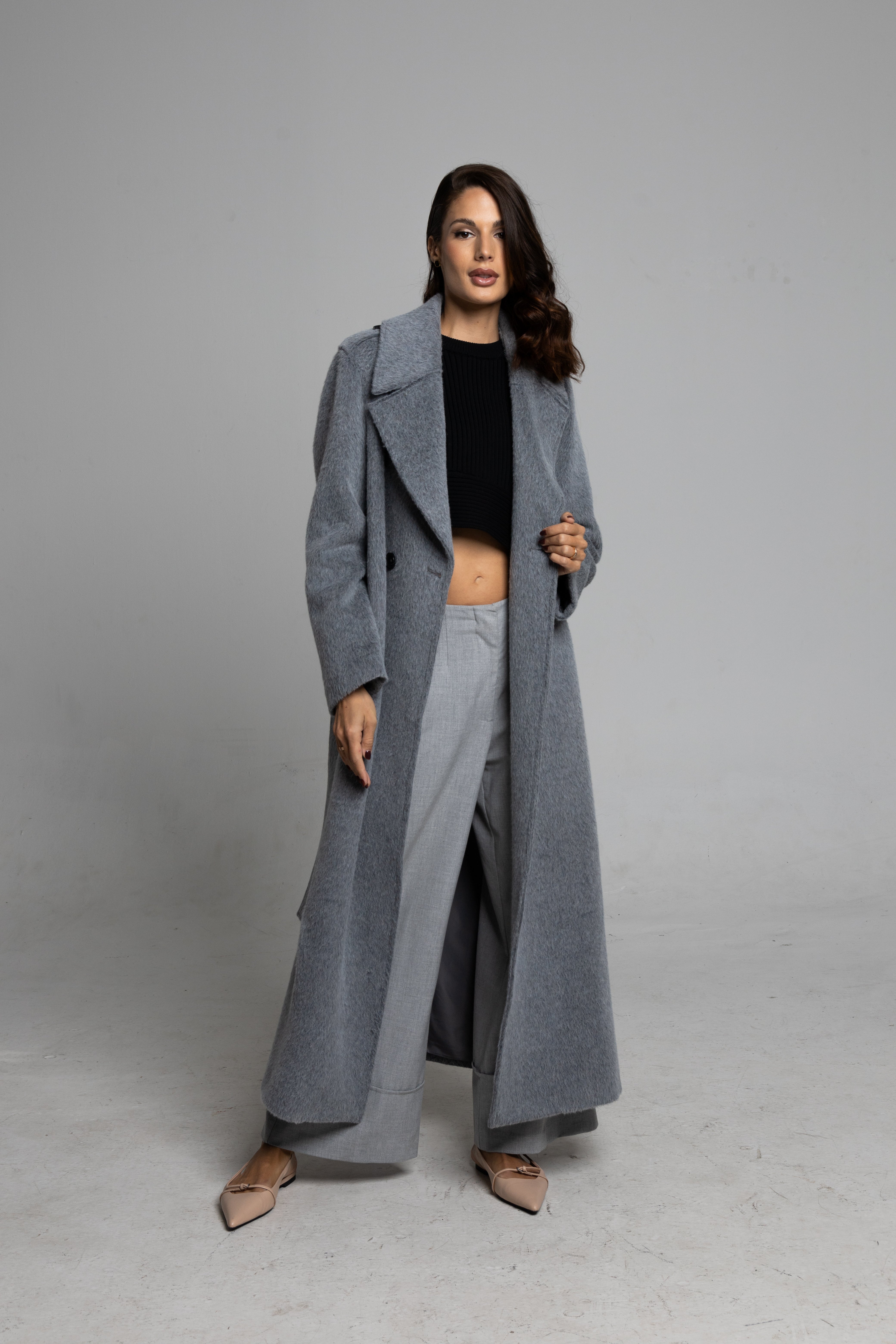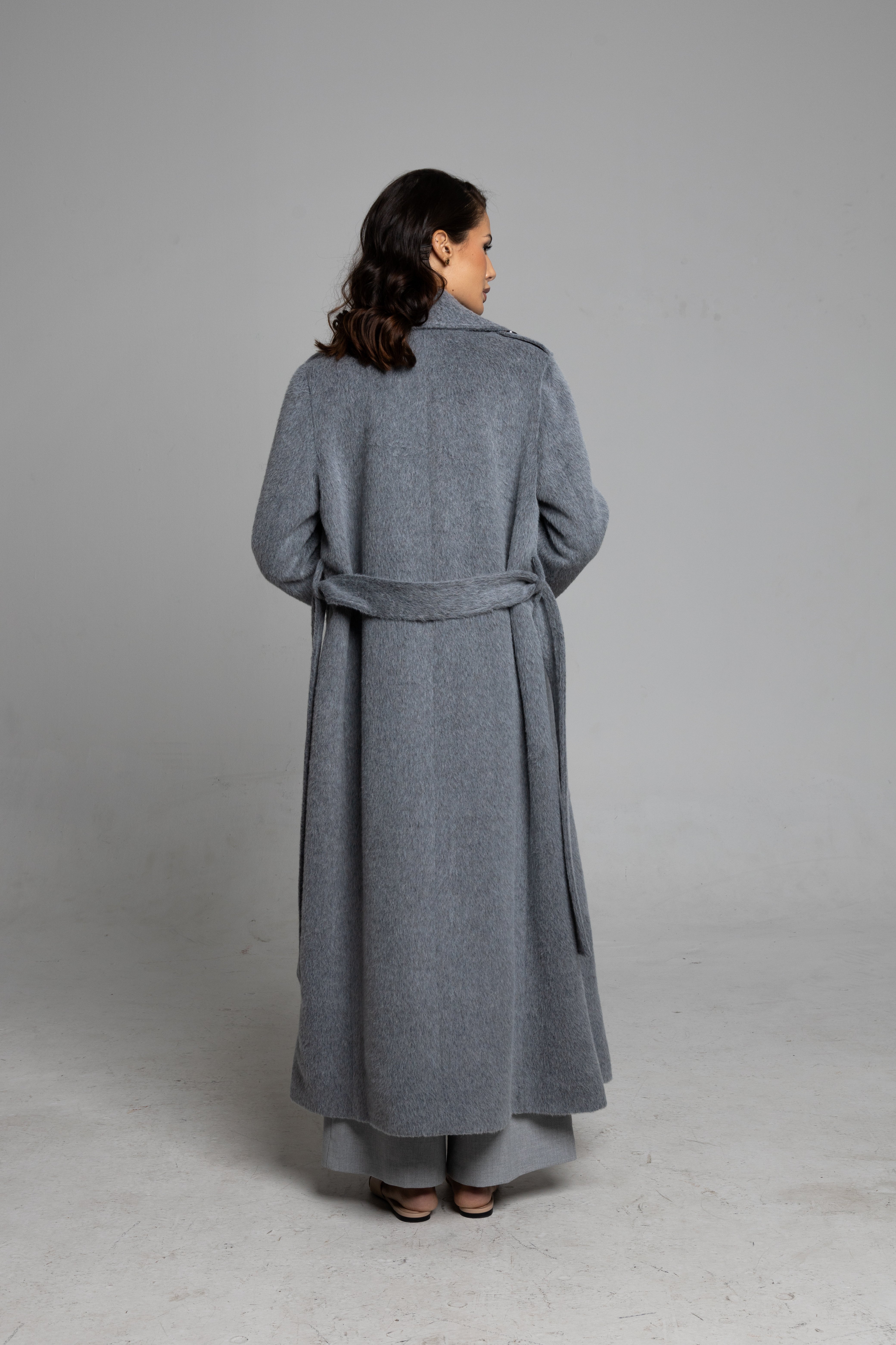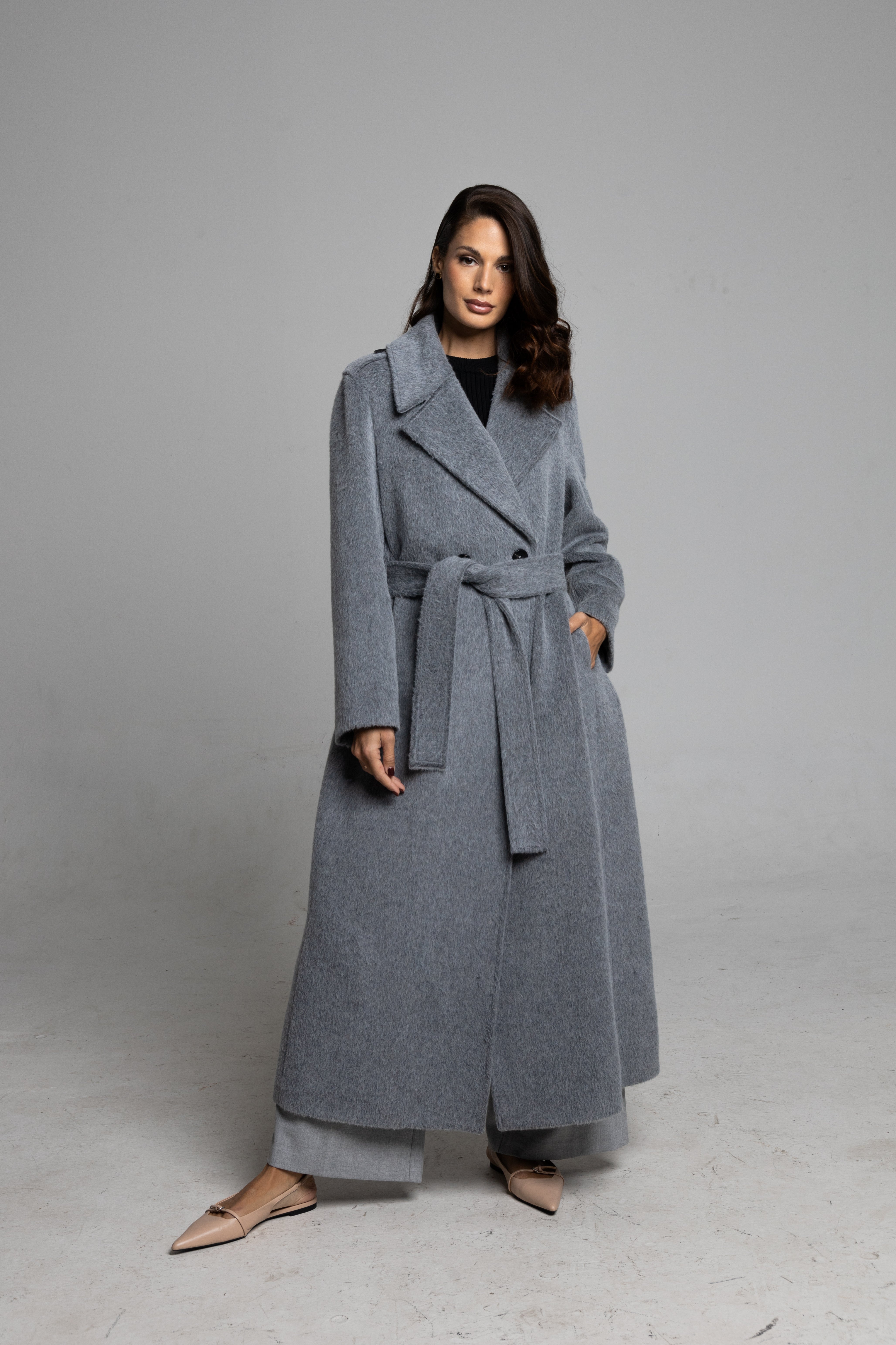 The JOY royal alpaca wool coat exudes elegance and exclusivity, showcasing the refined qualities of this extraordinary material. Renowned for its lightweight warmth, softness, and durability, alpaca is a luxurious choice that provides exceptional comfort and sophistication. The coat’s perfectly tailored shoulders enhance its silhouette, offering a flattering and polished look. Its versatile gray hue pairs effortlessly with any color, making it easy to style for any occasion. Elevate your wardrobe with this timeless piece, embodying a perfect blend of luxury and practicality.