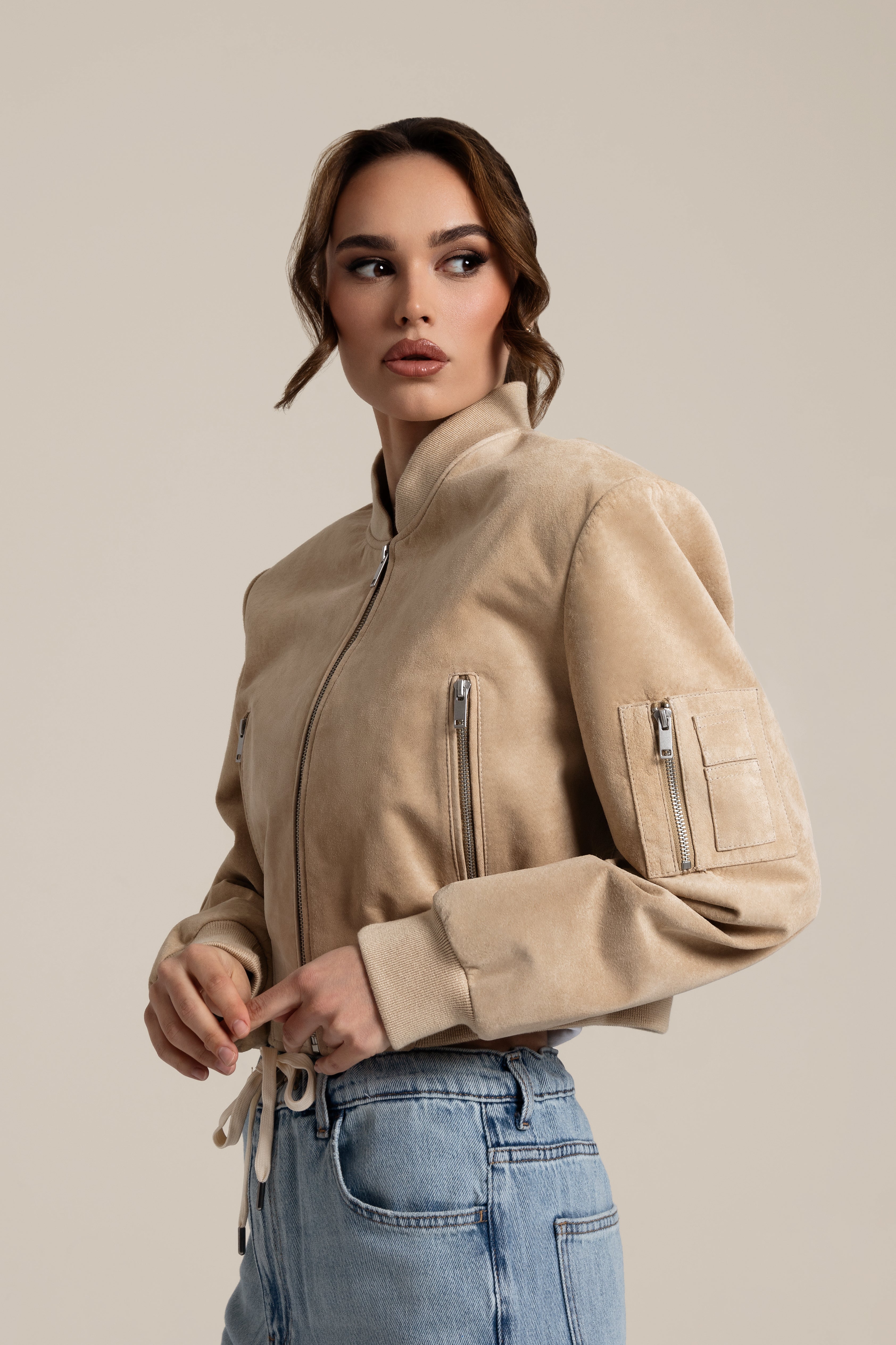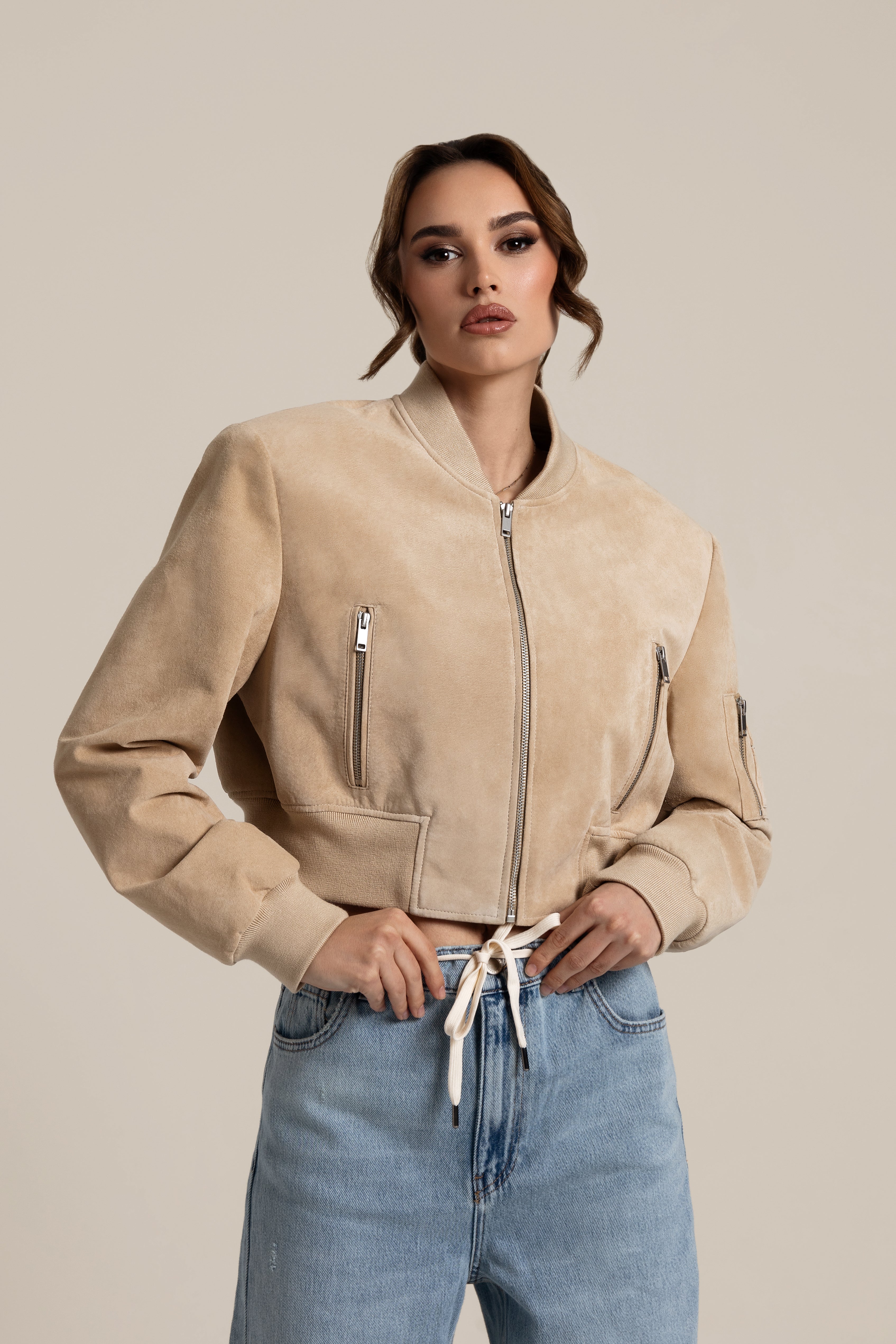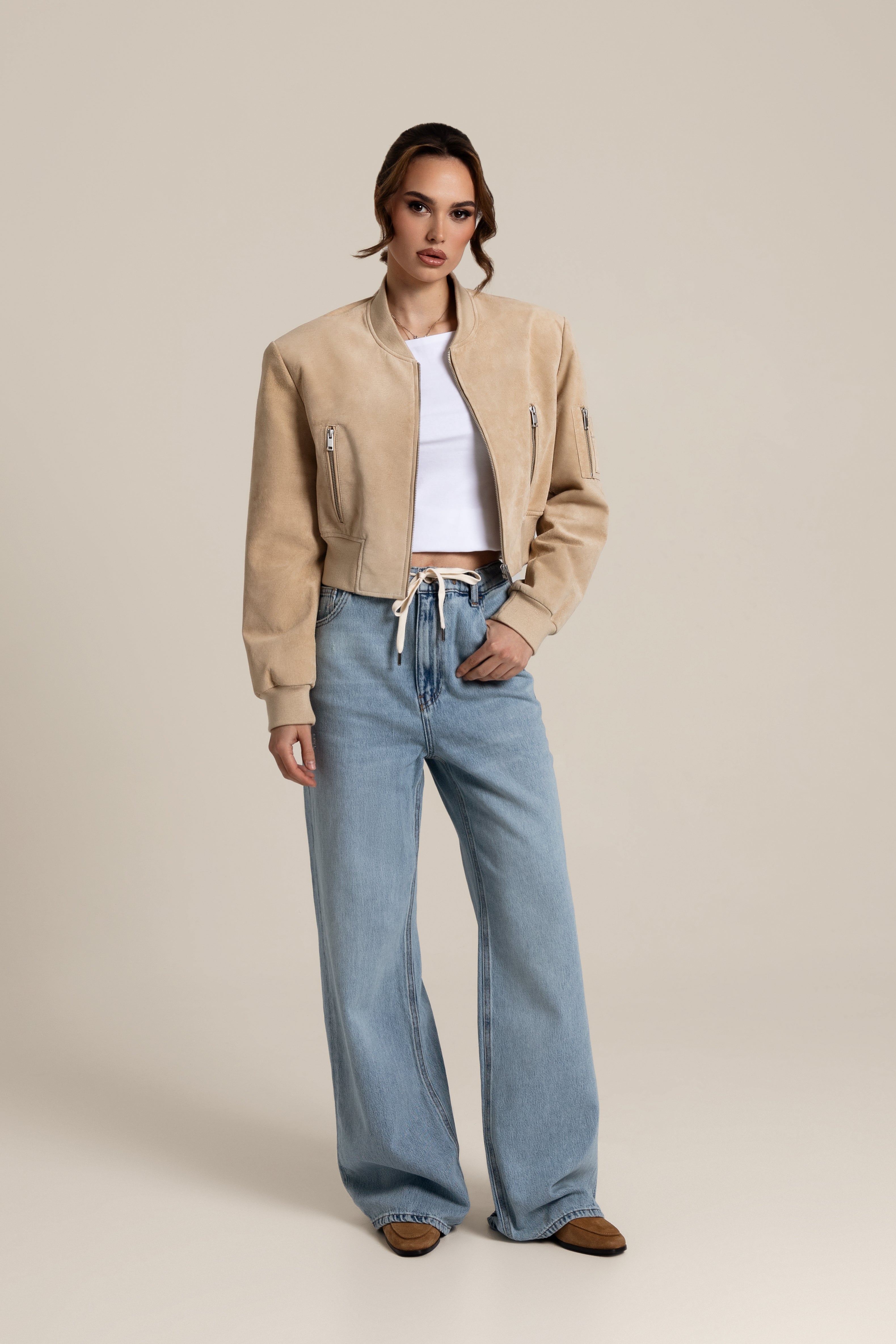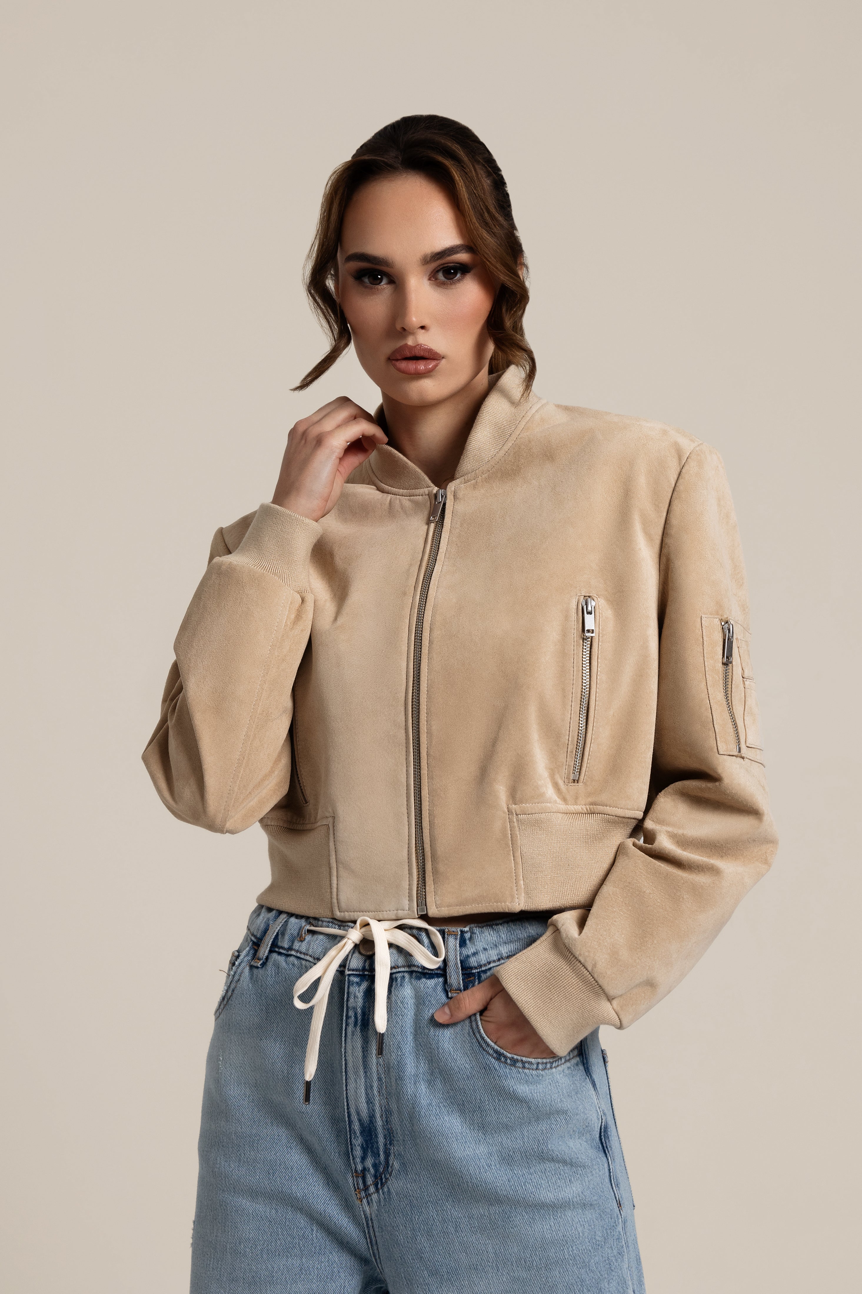 JOY Suede Bomber Light Beige