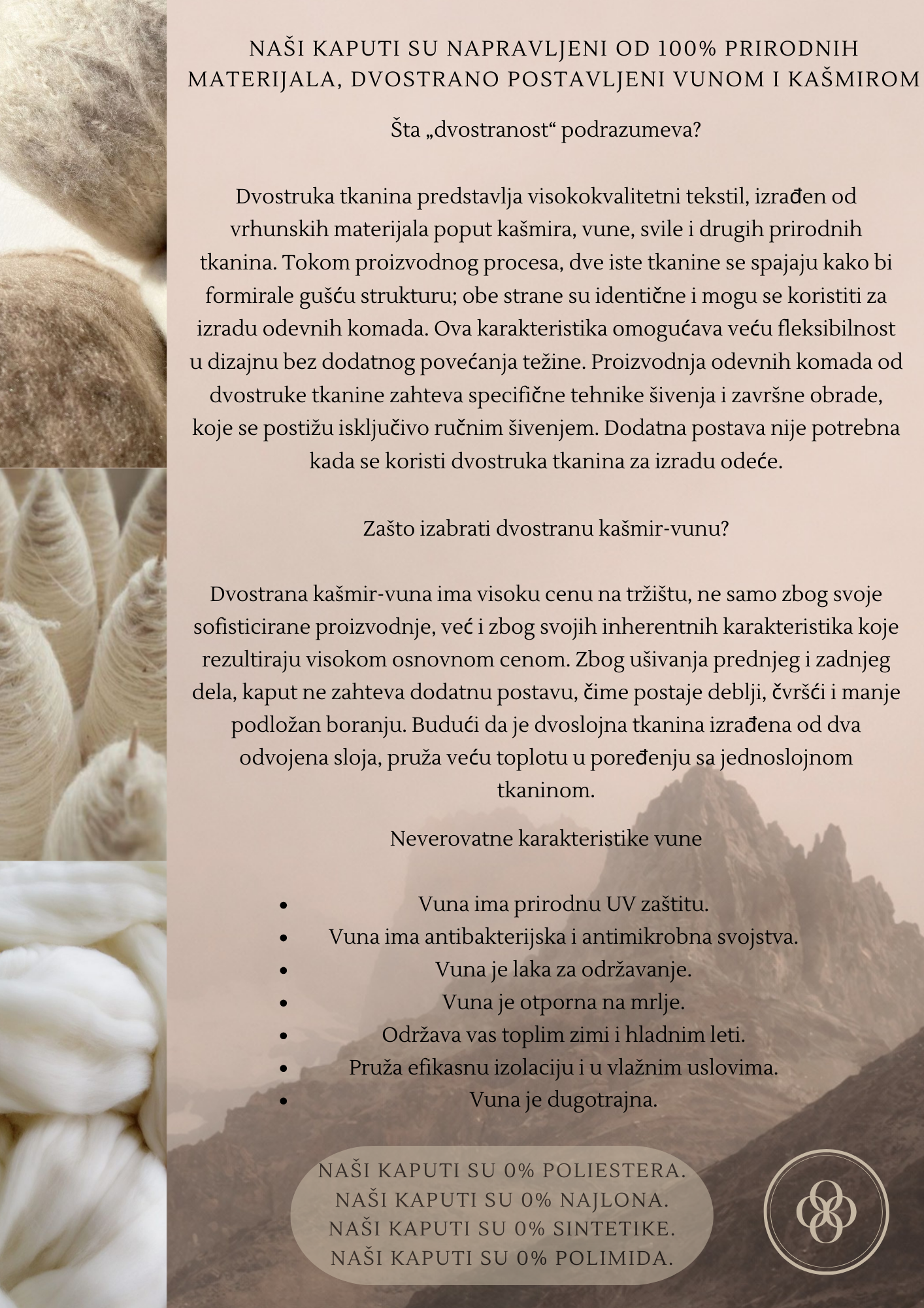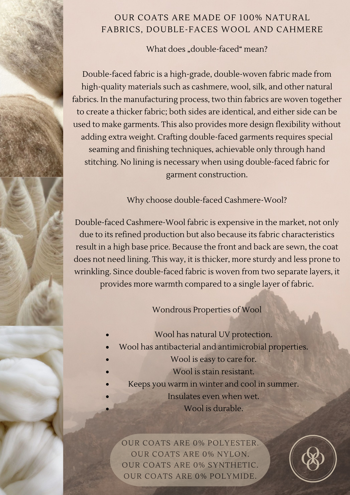 Lining: Double – sided wool and cashmere