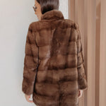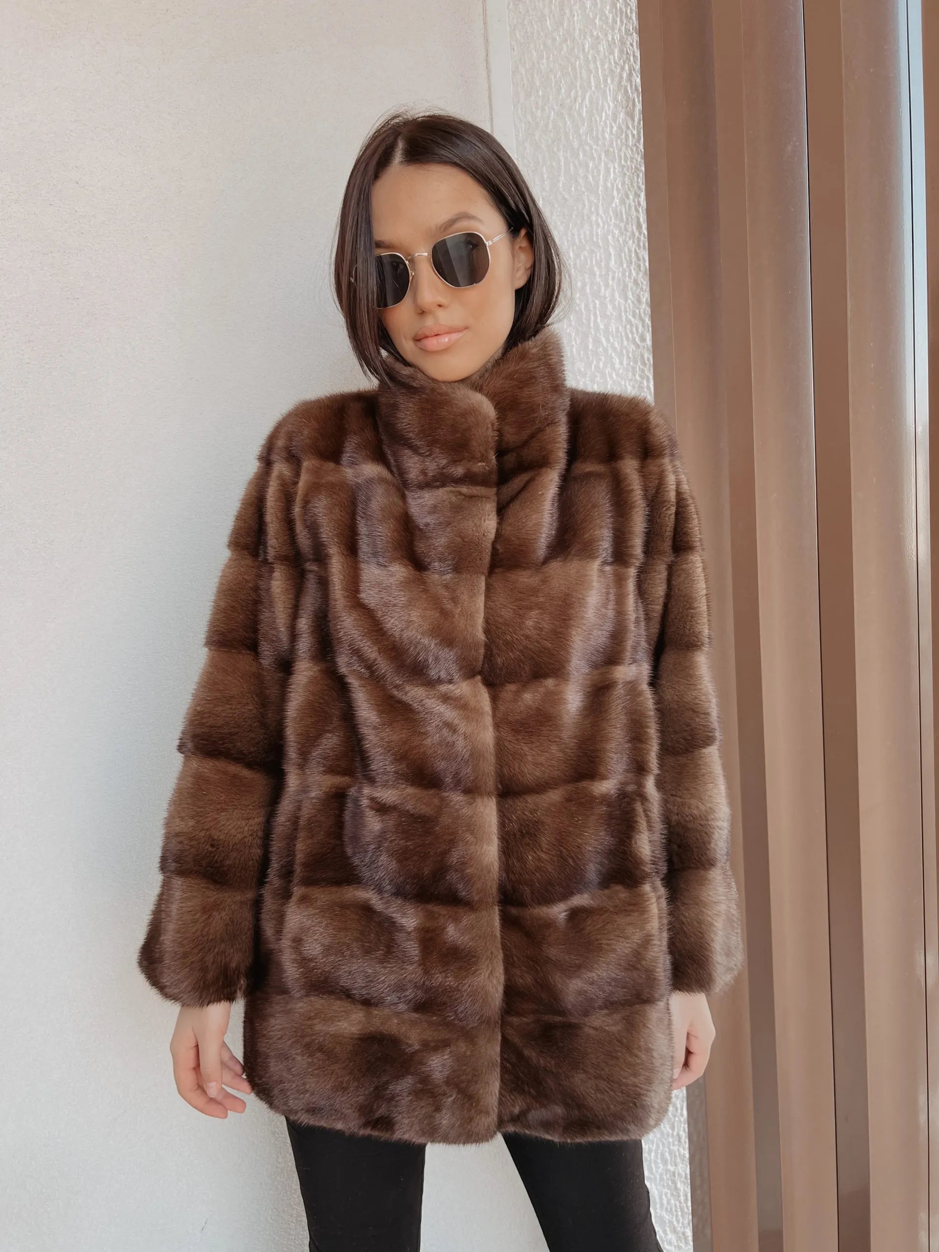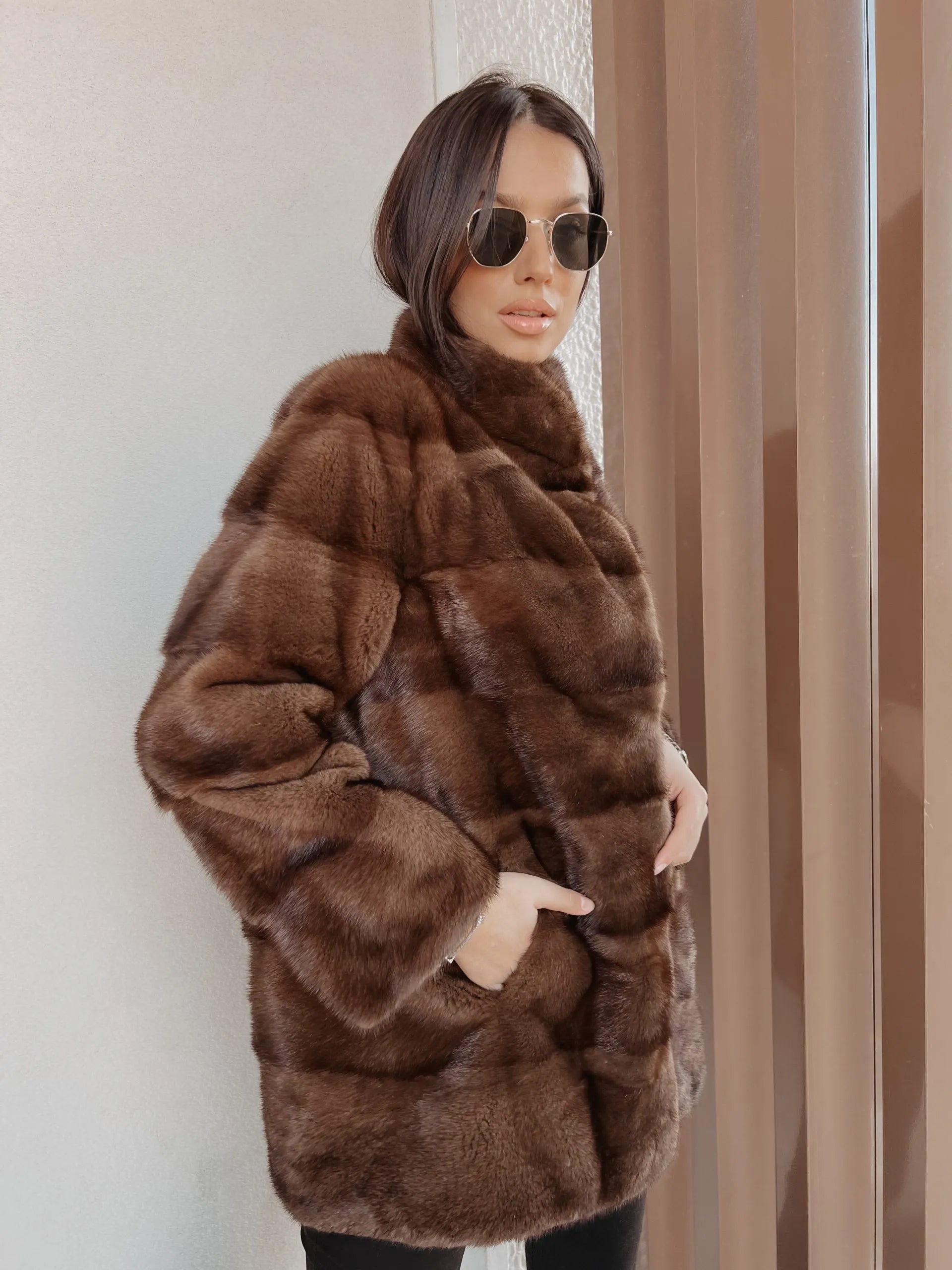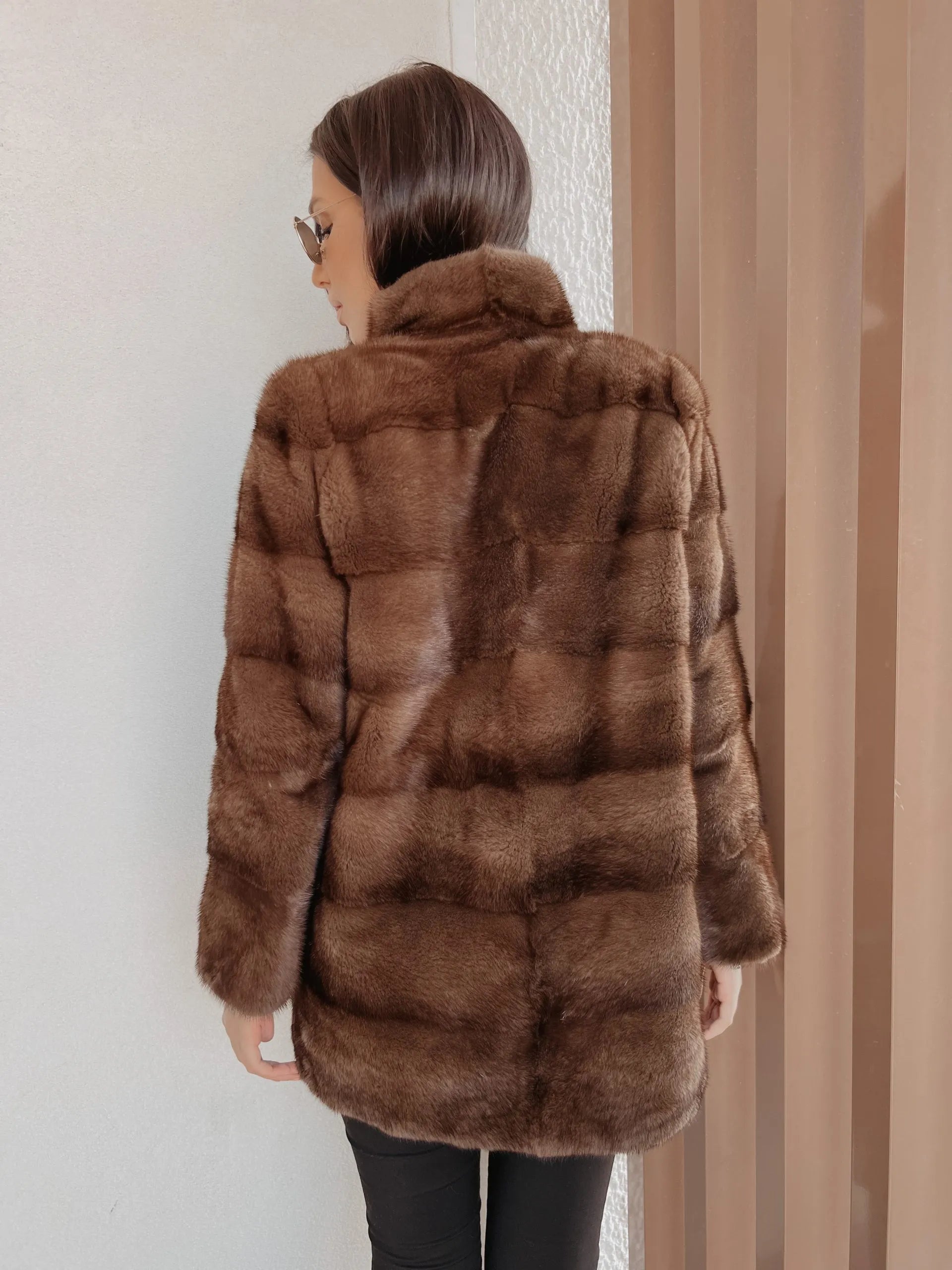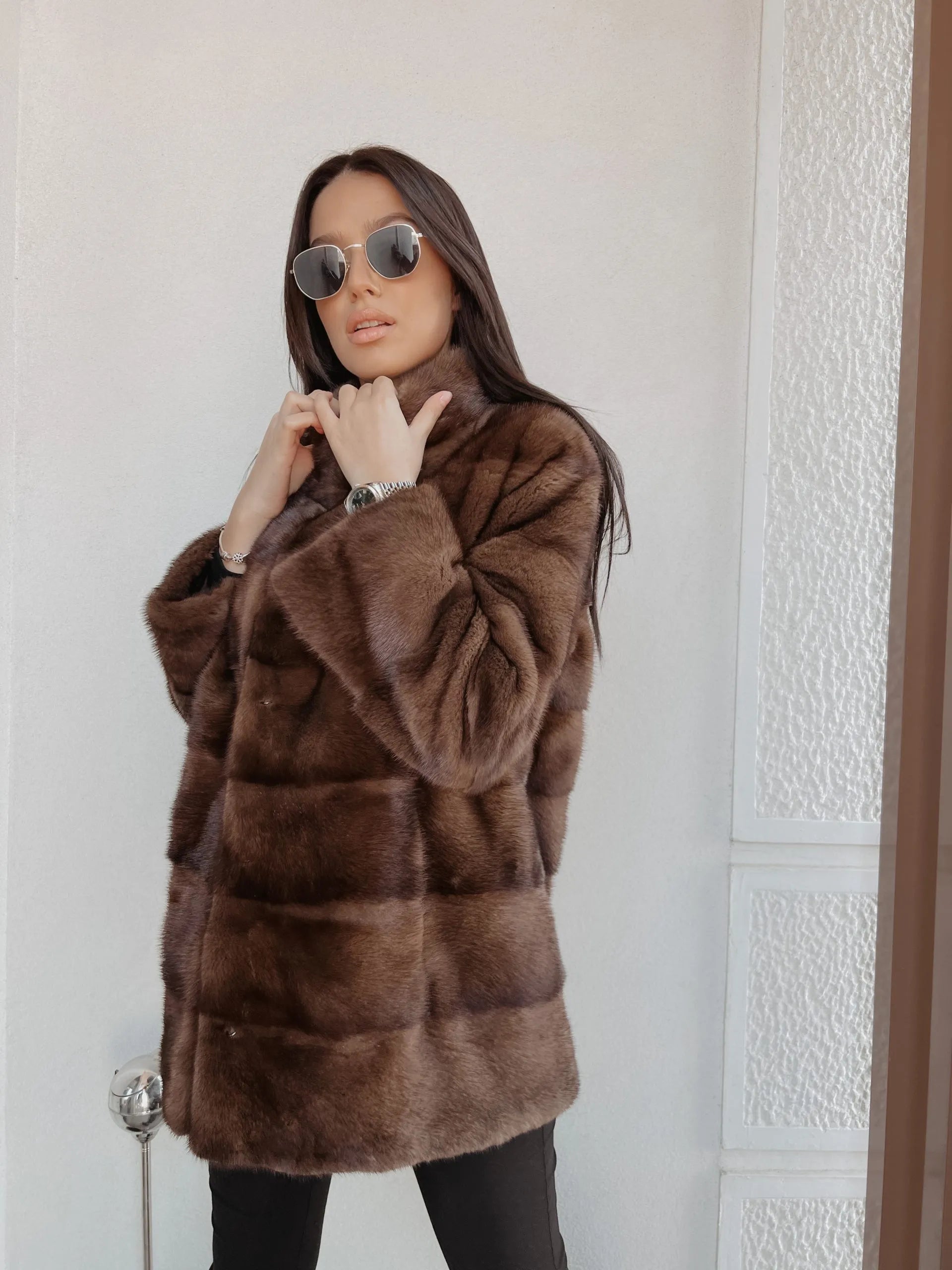 The LEONA mink fur coat is a premium piece that embodies timeless elegance and sophistication. Designed to make a statement, this coat features an extended collar that adds a distinctive touch of seriousness. Its unique sleeve cut sets it apart from other garments, highlighting its authentic design and offering a canvas through which you can express your personal style. The LEONA coat is the ultimate embodiment of luxury and refinement.