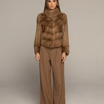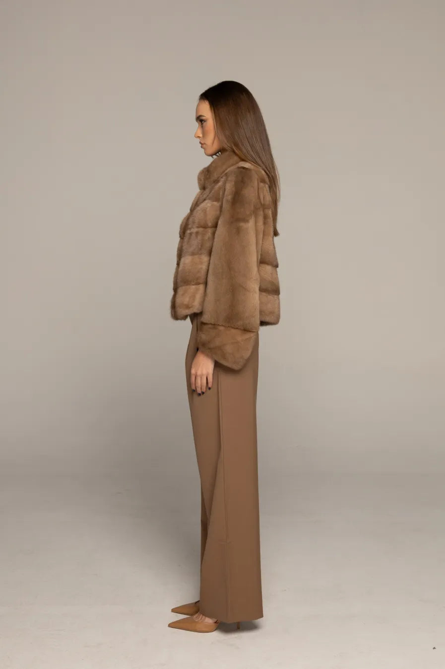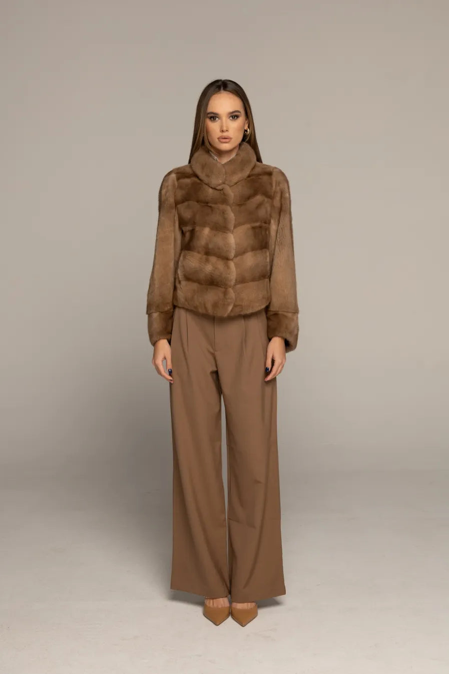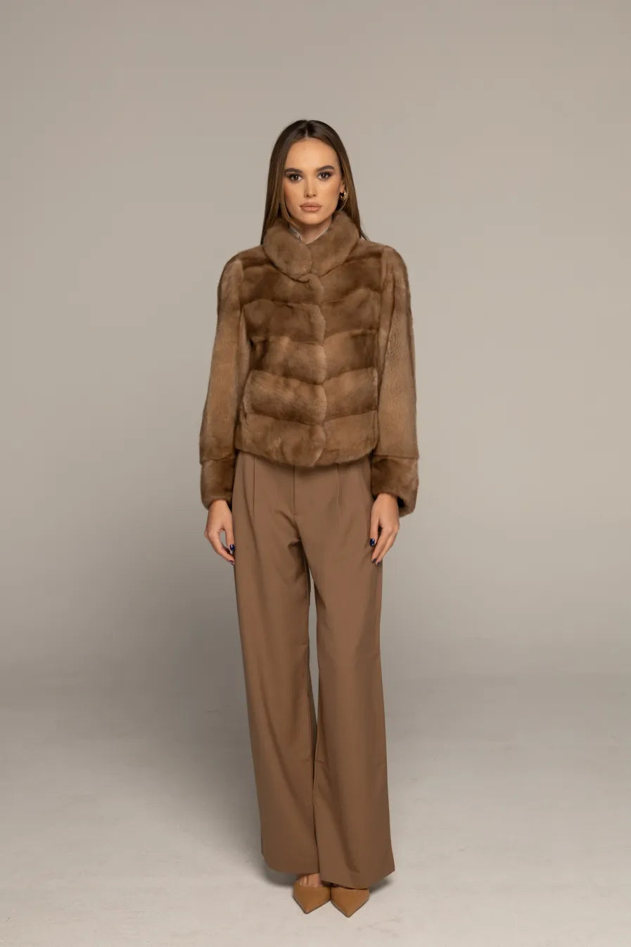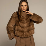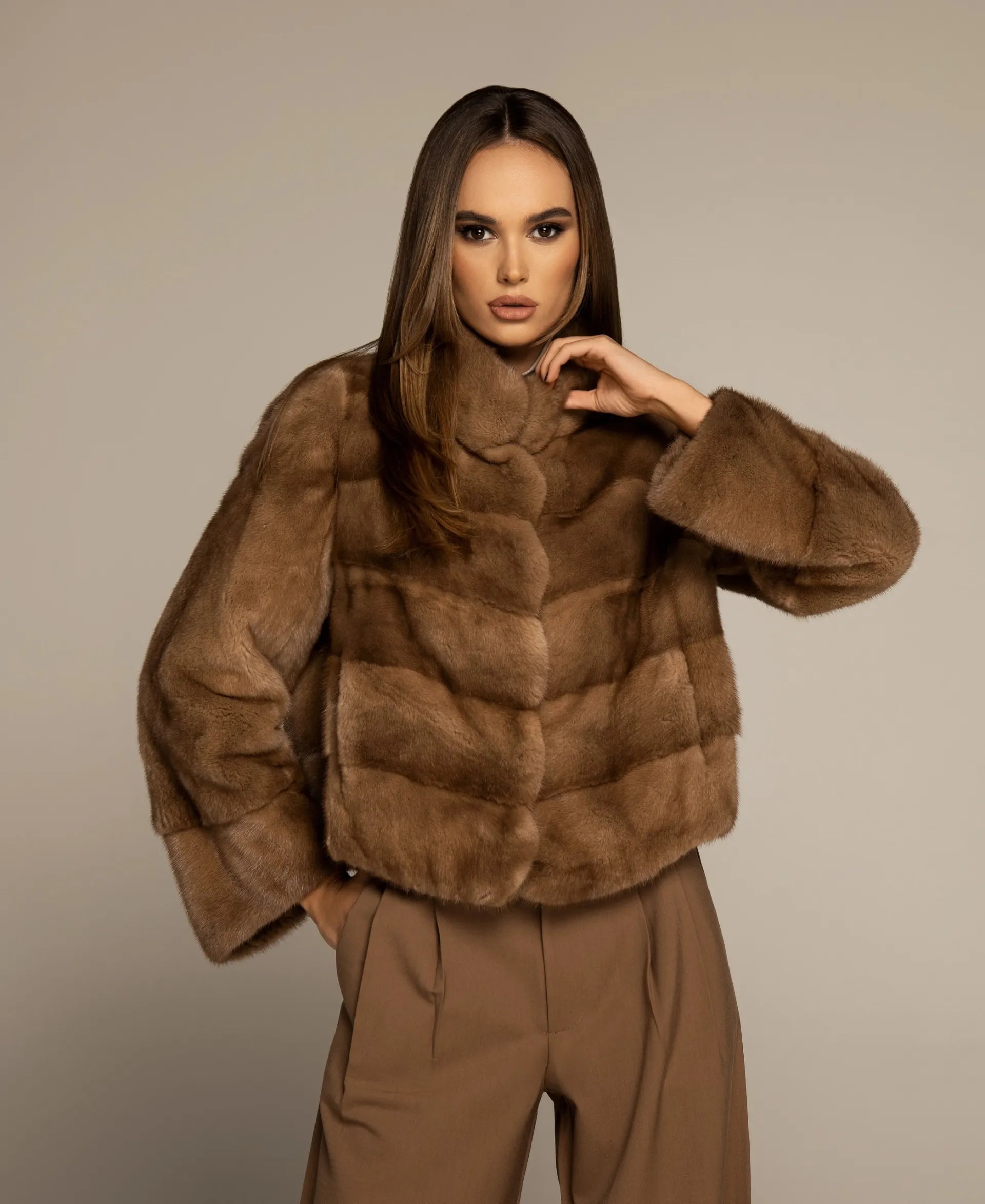 The LEONA mink fur coat is a premium piece that embodies timeless elegance and sophistication. Designed to make a statement, this coat features an extended collar that adds a distinctive touch of seriousness. Its unique sleeve cut sets it apart from other garments, highlighting its authentic design and offering a canvas through which you can express your personal style. The LEONA coat is the ultimate embodiment of luxury and refinement.