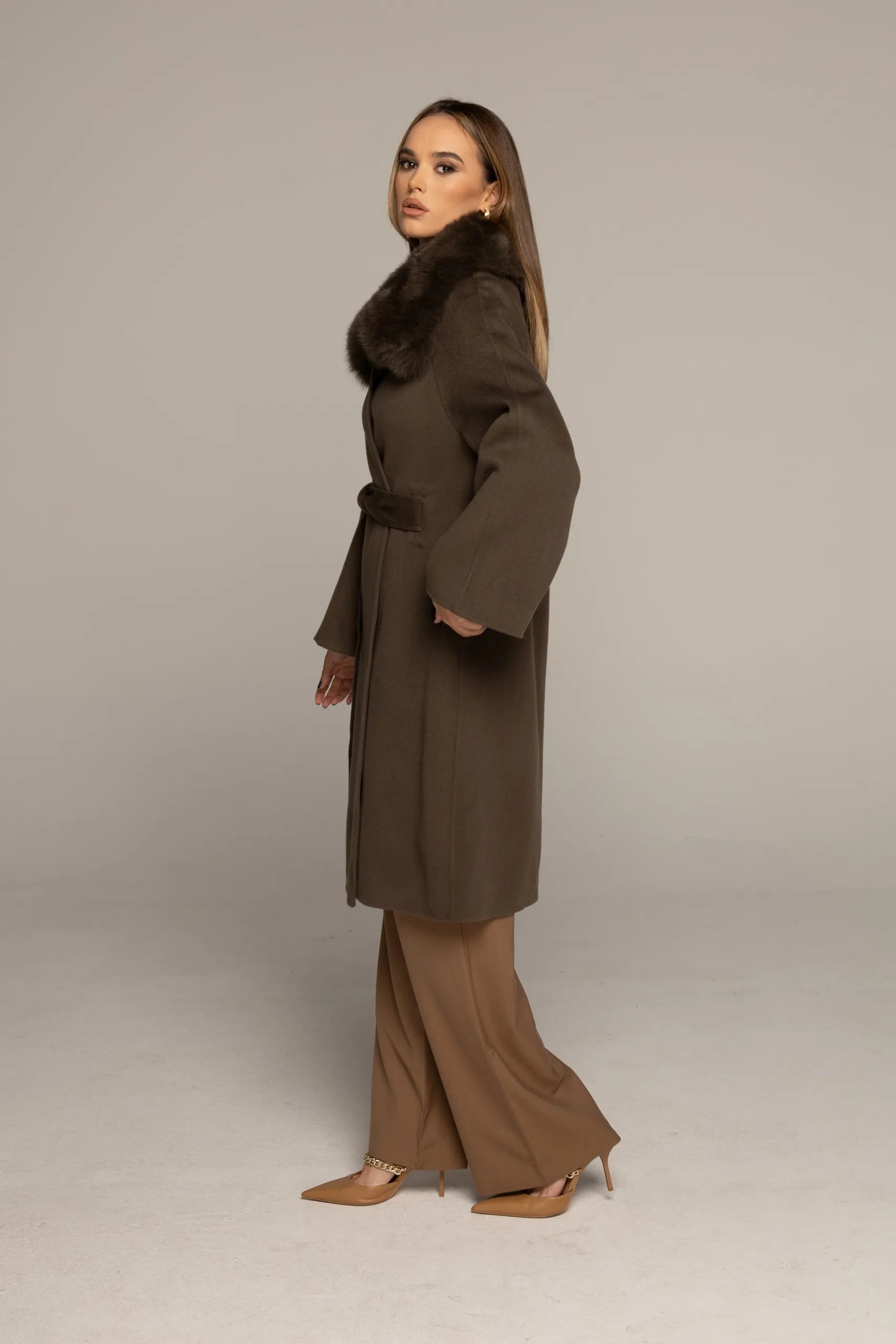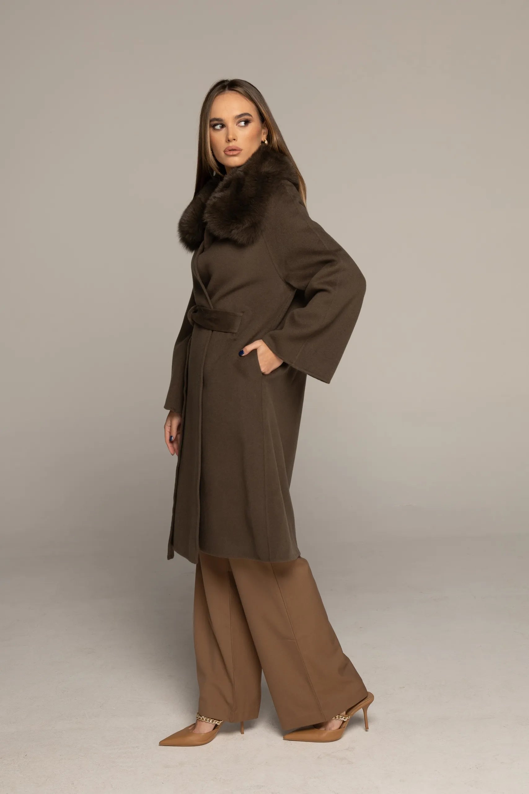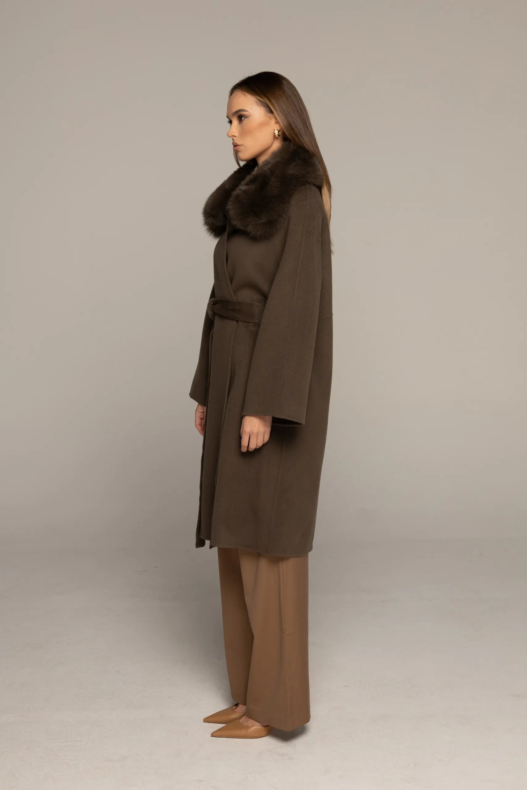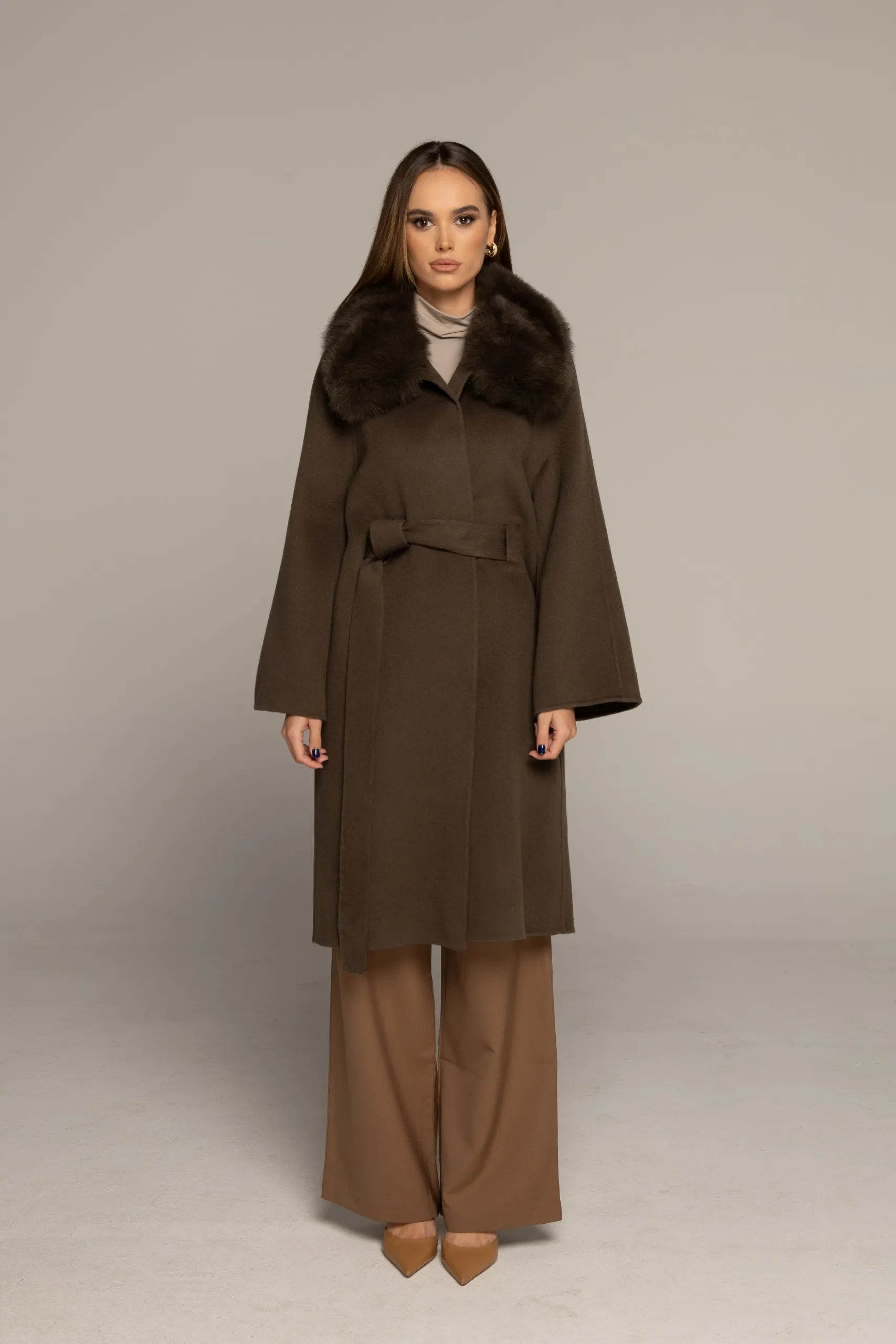 Suitable for women of all ages, the NADY coat effortlessly elevates your look to a higher level of sophistication. The detachable fur collar offers versatility, giving the coat a completely different appearance when removed. Additionally, it features a partially hidden belt, adding a touch of refinement and elegance.