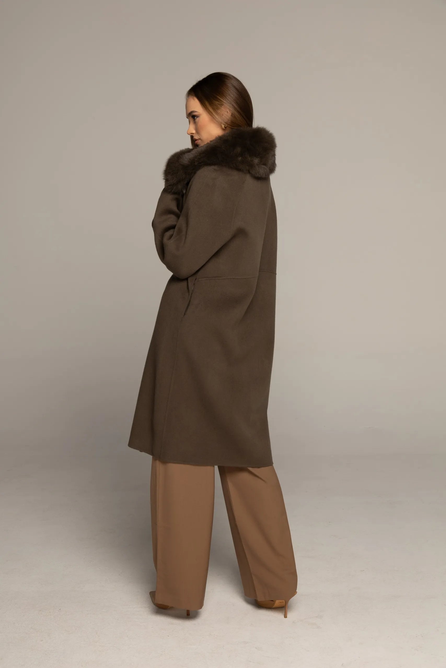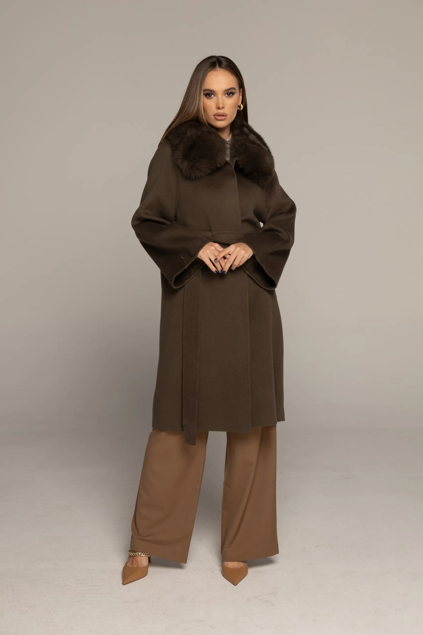 The NADY Wool and Cashmere Coat exudes elegance with its collar made from the finest polar fox fur. Perfect for everyday wear, this coat can be crafted in 24 different colors, allowing you to match it perfectly with your personal style and preferences.
