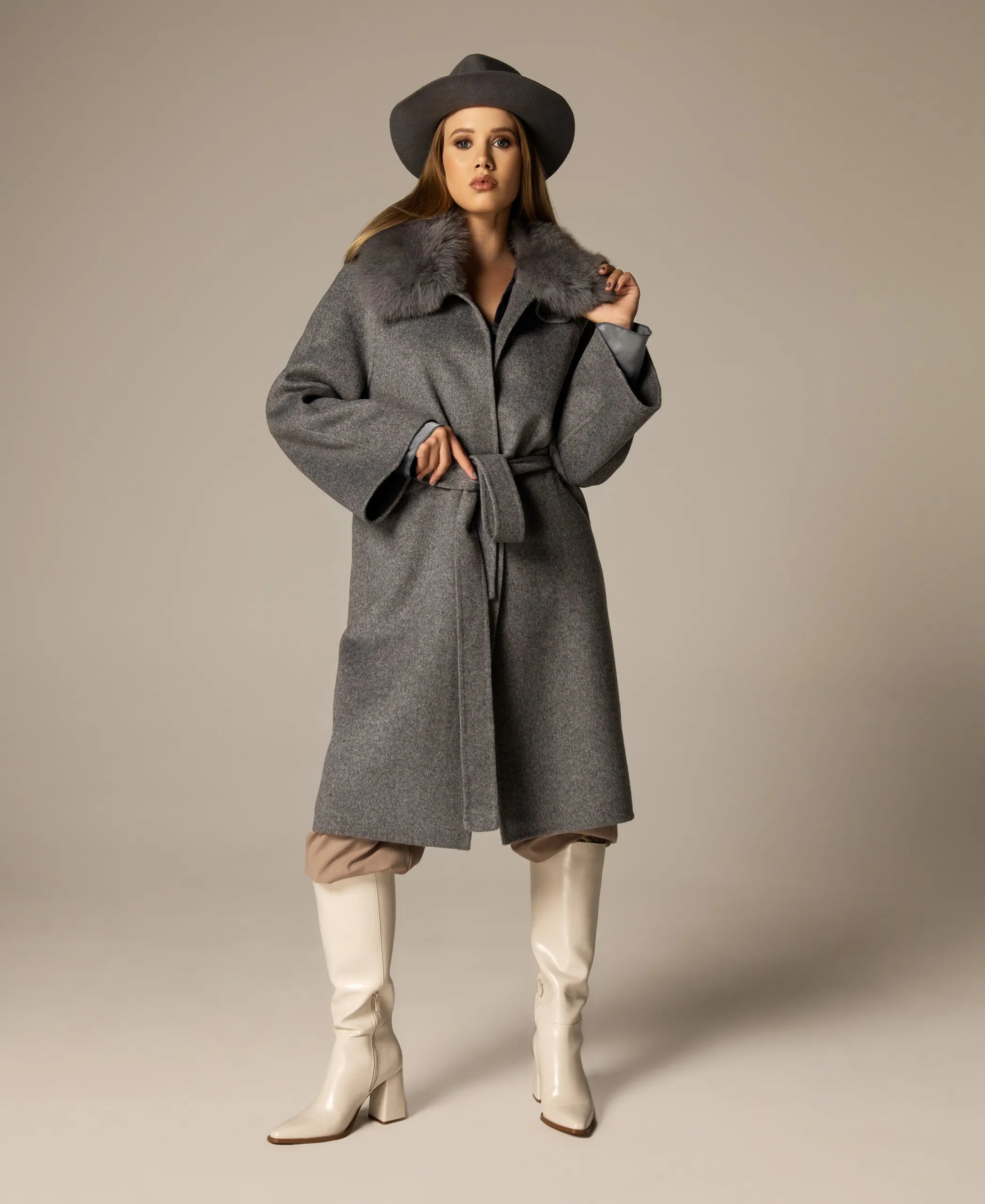 Suitable for women of all ages, the NADY coat effortlessly elevates your look to a higher level of sophistication. The detachable fur collar offers versatility, giving the coat a completely different appearance when removed. Additionally, it features a partially hidden belt, adding a touch of refinement and elegance.