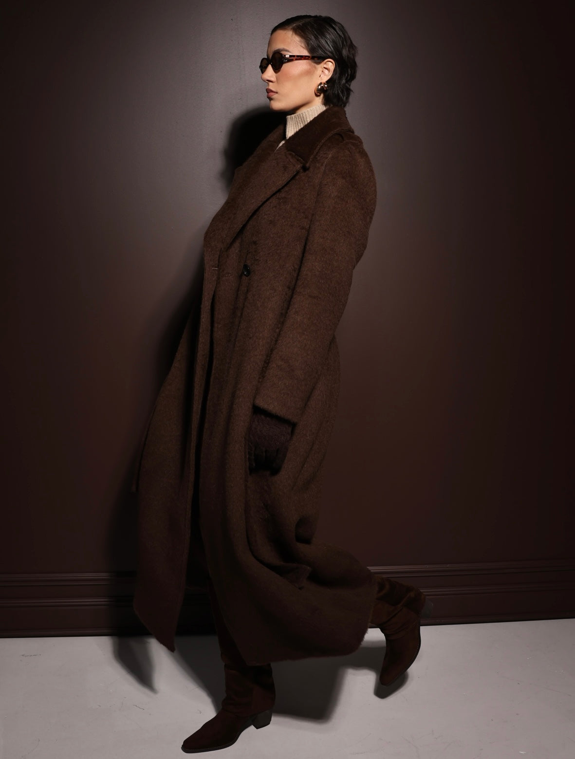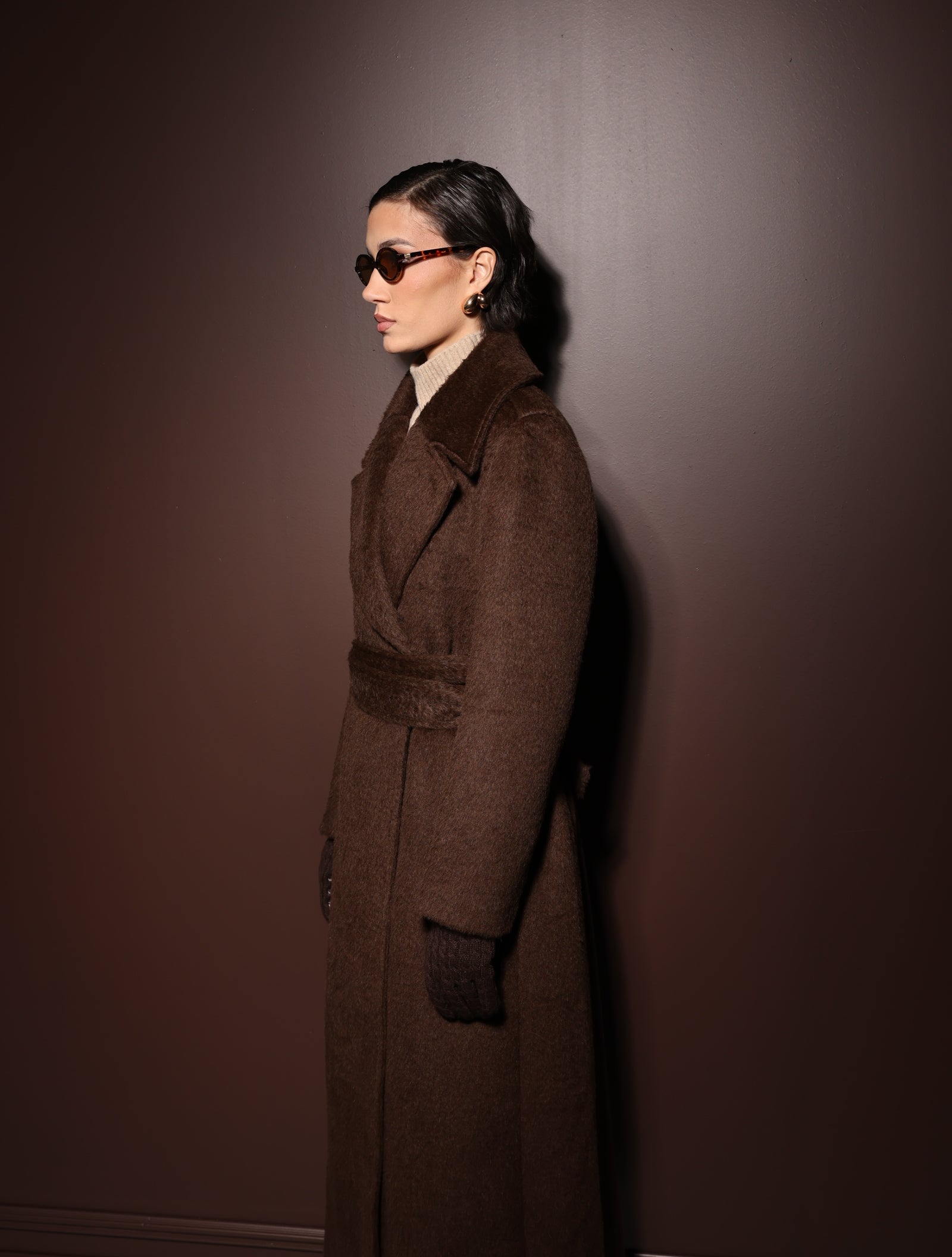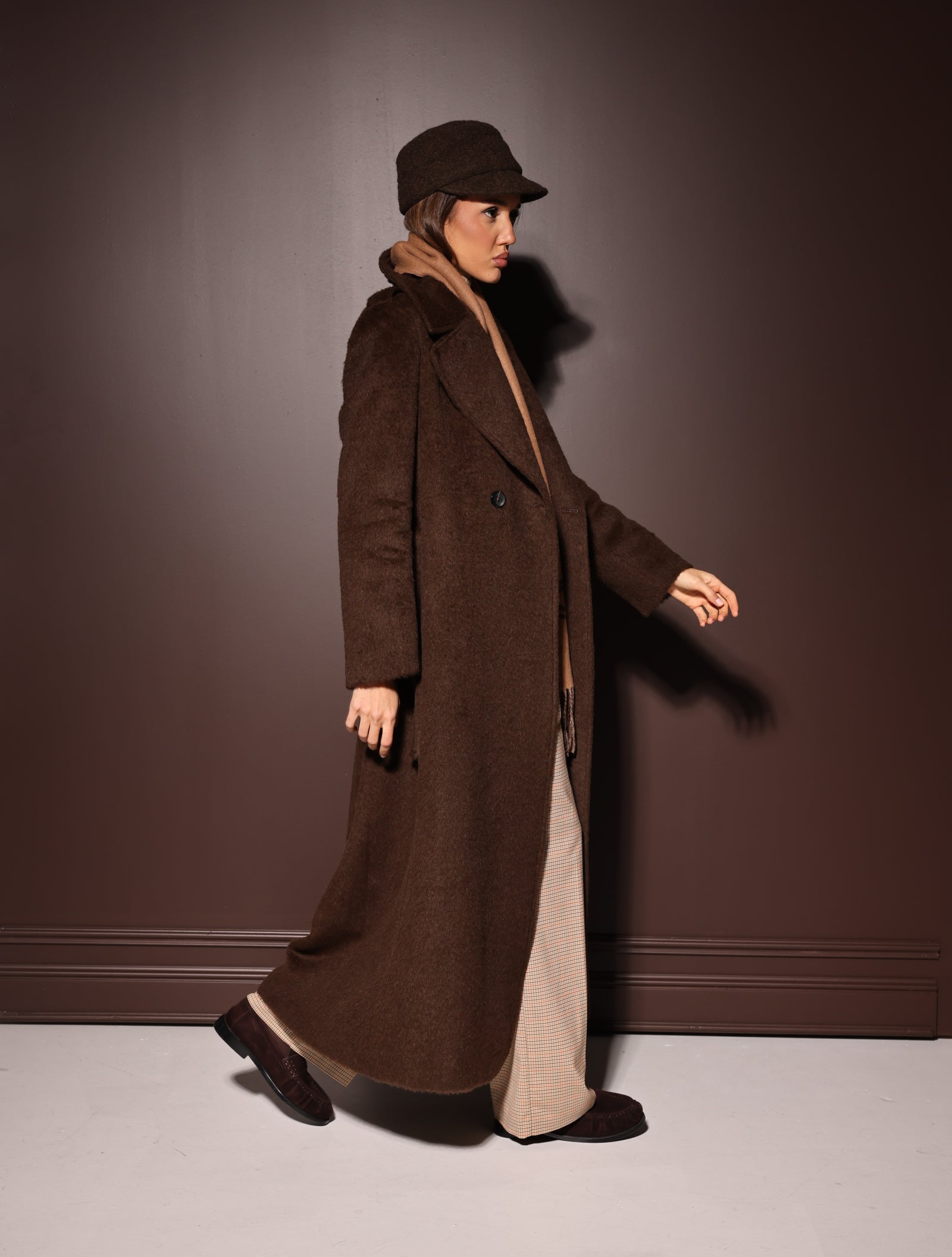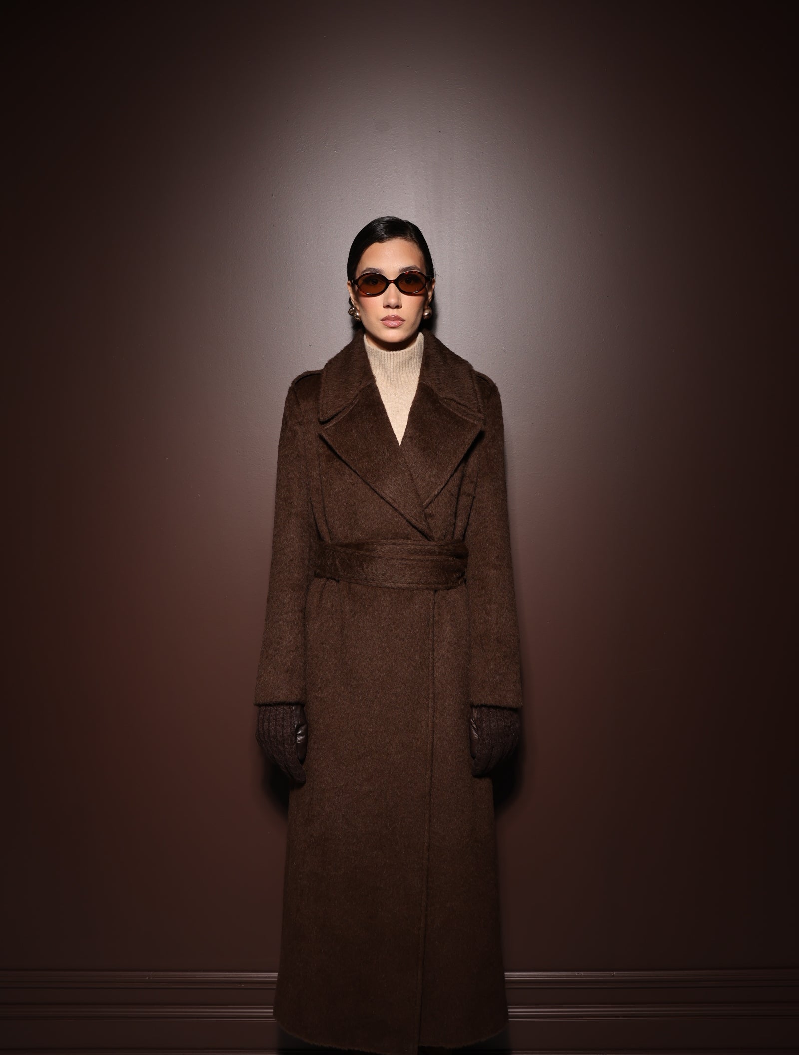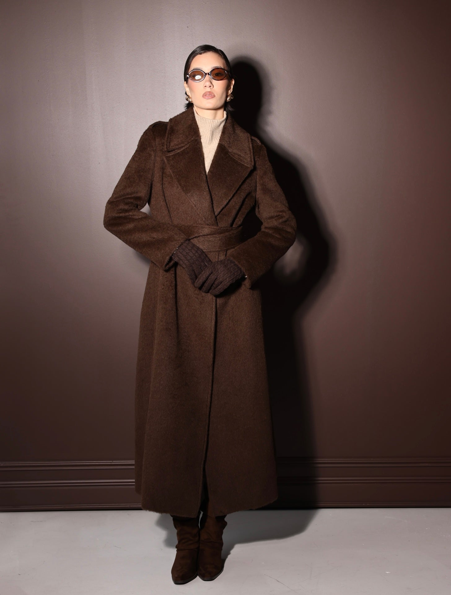 The JOY royal alpaca wool coat exudes elegance and exclusivity, showcasing the refined qualities of this extraordinary material. Renowned for its lightweight warmth, softness, and durability, alpaca is a luxurious choice that provides exceptional comfort and sophistication. The coat’s perfectly tailored shoulders enhance its silhouette, offering a flattering and polished look. Its versatile brown hue pairs effortlessly with any color, making it easy to style for any occasion. Elevate your wardrobe with this timeless piece, embodying a perfect blend of luxury and practicality.