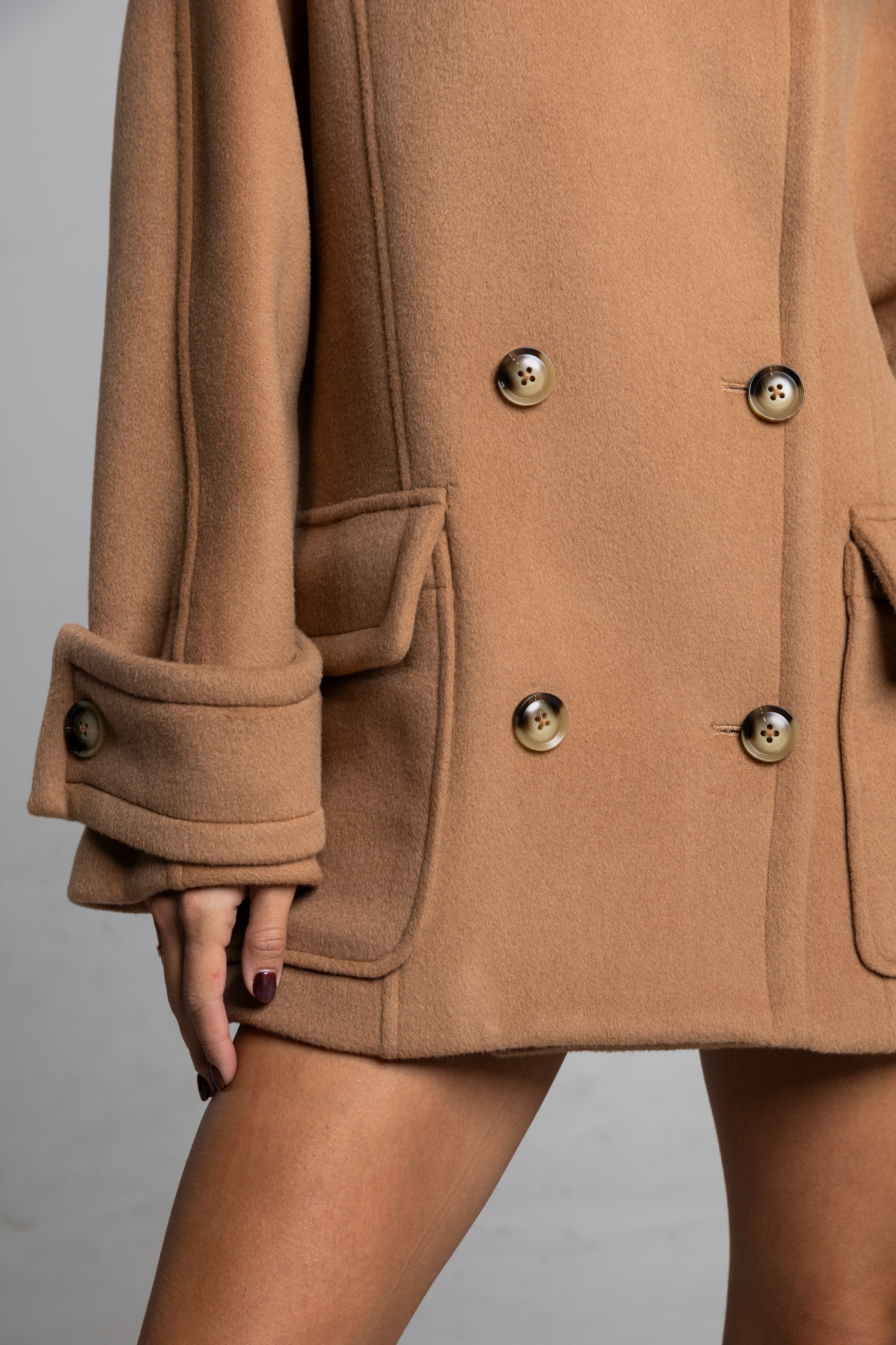 Details: High collar, Two large pockets on each side, Four big Buttons, High sleeve straps